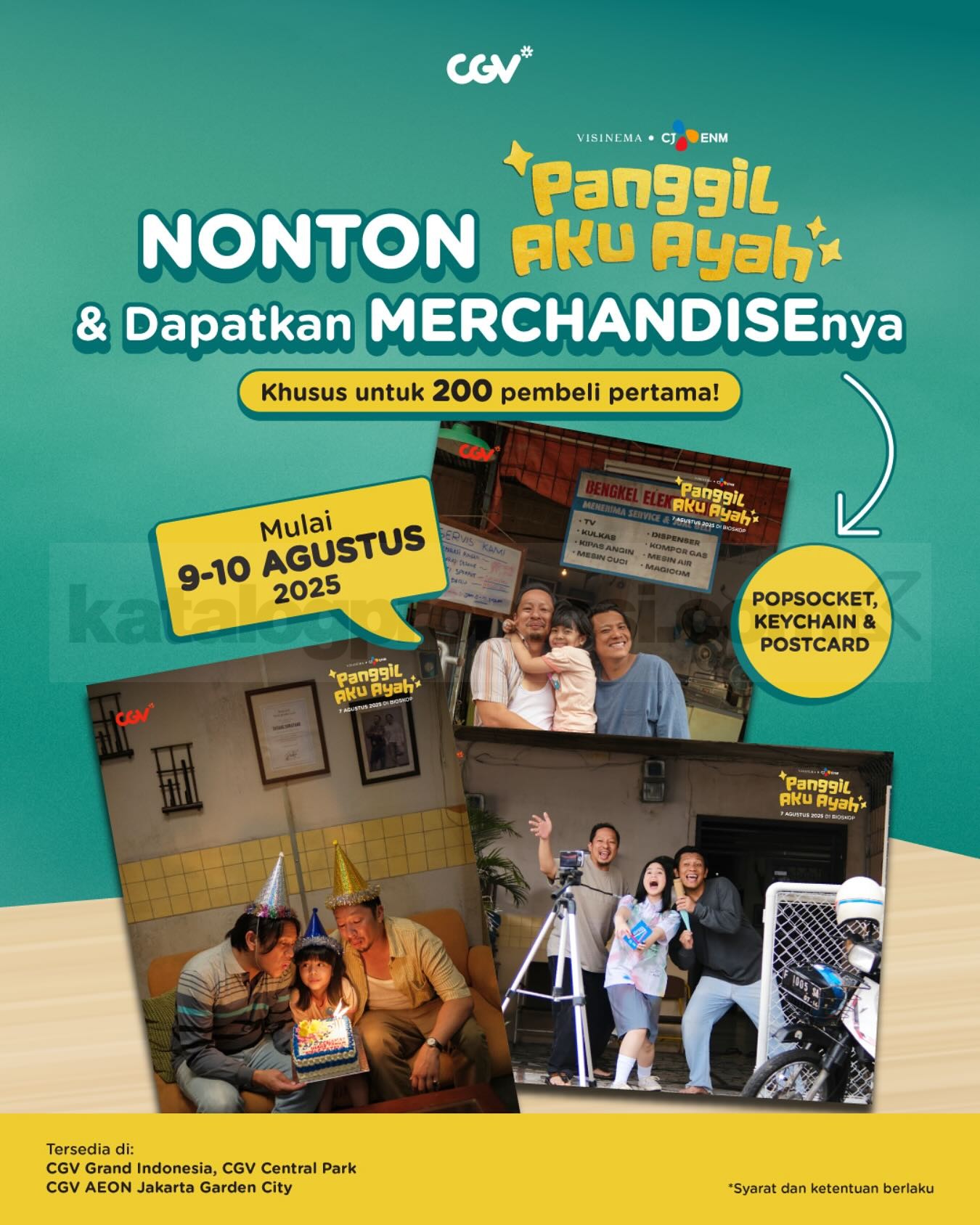 👉 Cek gambar promo CGV Nonton Panggil Aku Ayah di bawah ini untuk lihat bonus merchandise yang bisa kamu bawa pulang!
