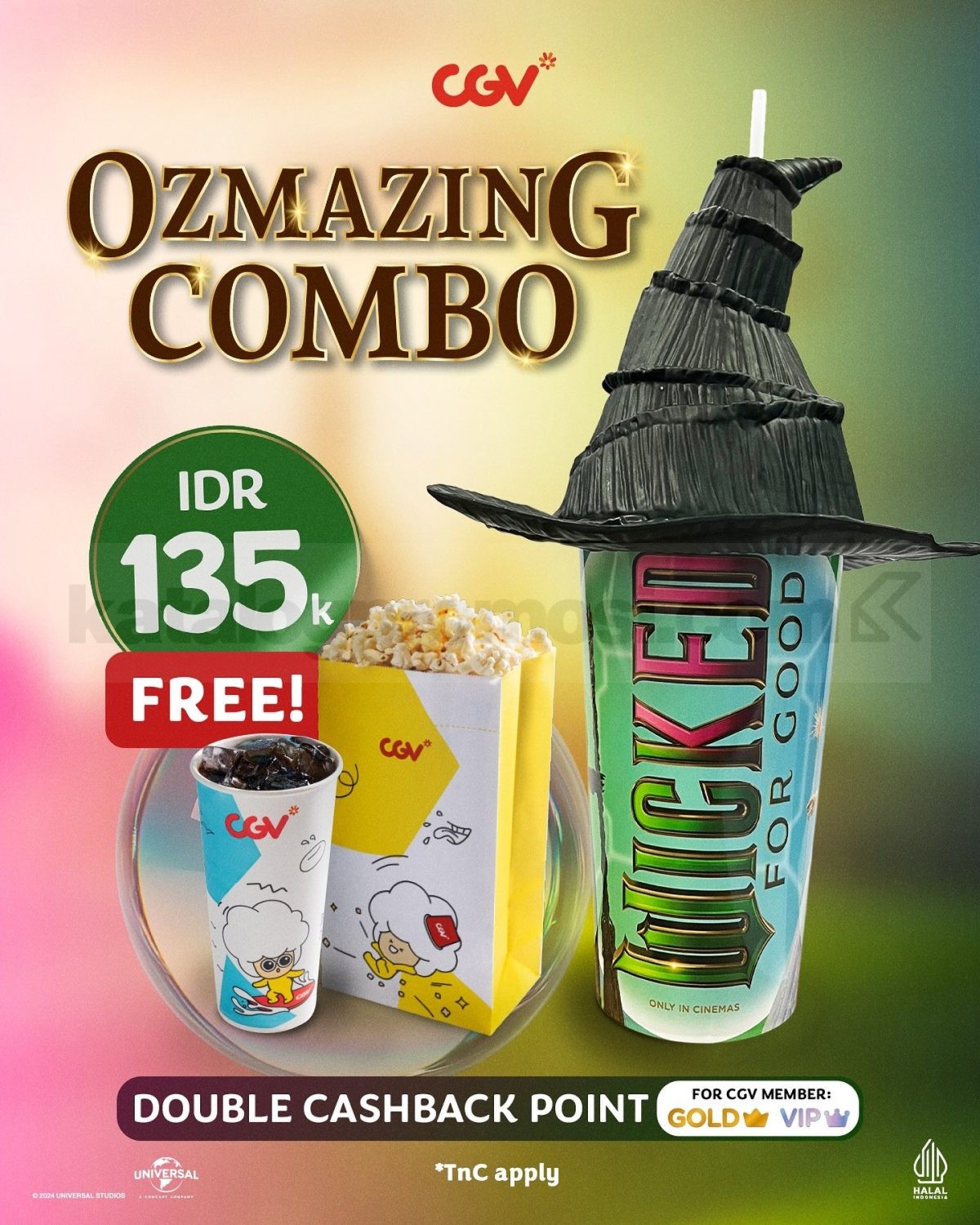 Promo CGV Collectible Ticket Wicked: For Good mulai Rp99.000 + OZ-Combo, berlaku mulai 19 November 2025 di lokasi tertentu, persediaan terbatas.