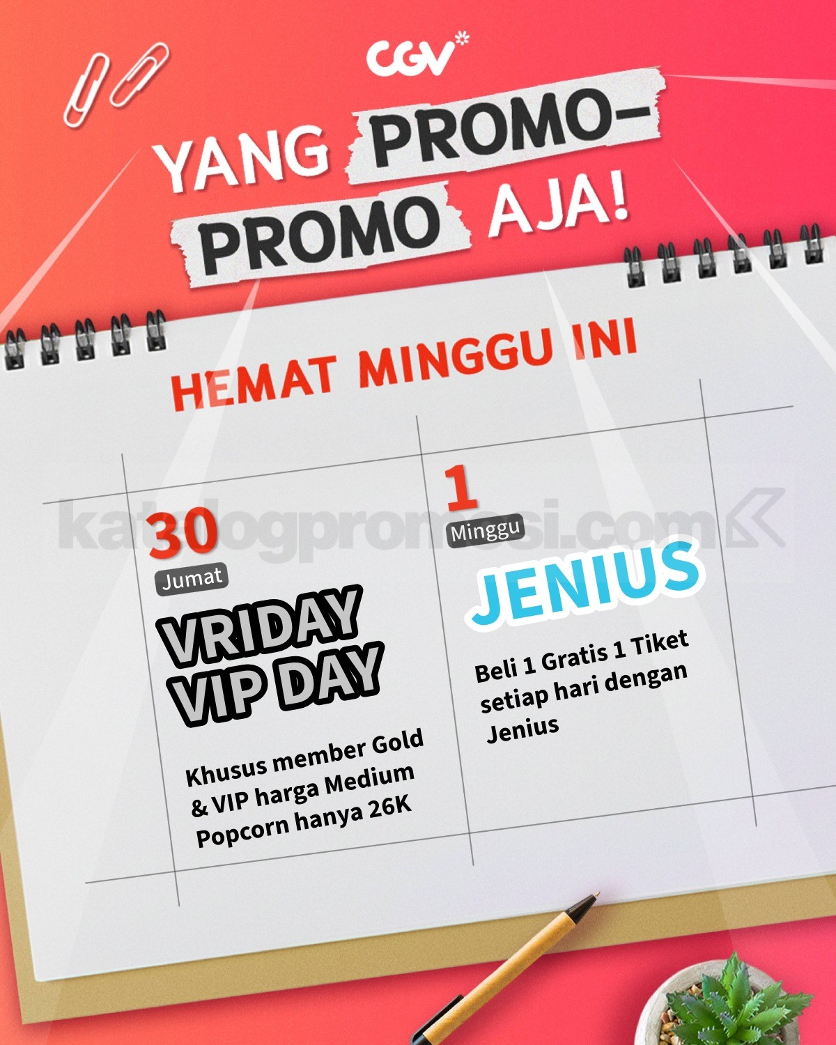 Semua promo ini jalan di tanggal yang berbeda, jadi tinggal sesuaikan jadwal nonton dengan benefit yang lagi kamu incar.
