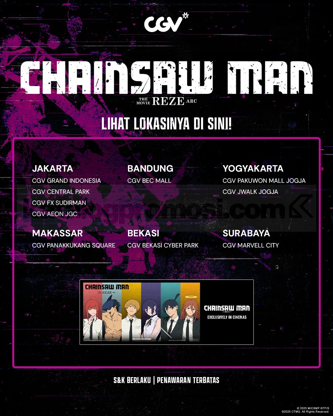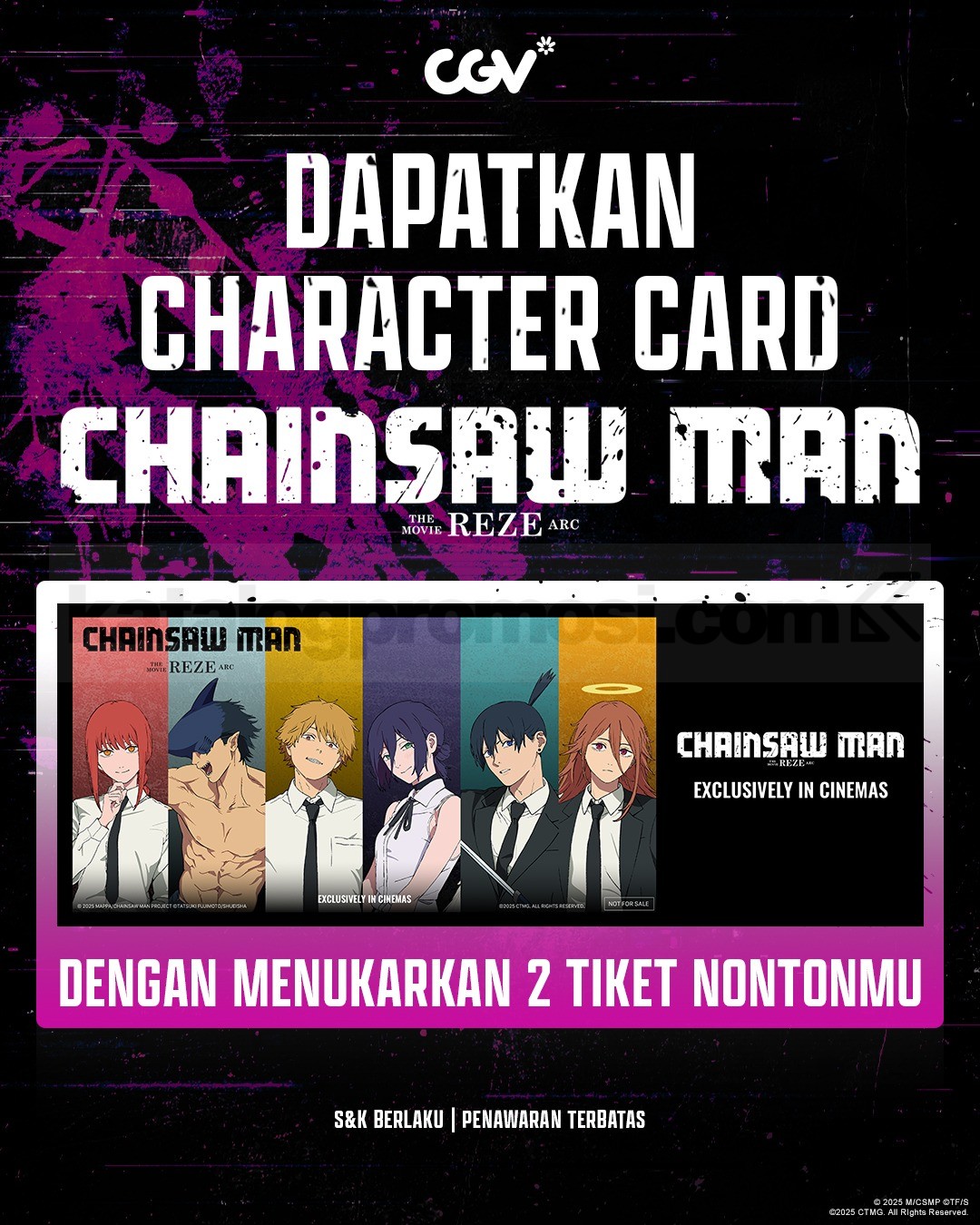 Berlaku khusus untuk pembelian tiket film Chainsaw Man – The Movie: Reze Arc di CGV yang berpartisipasi.