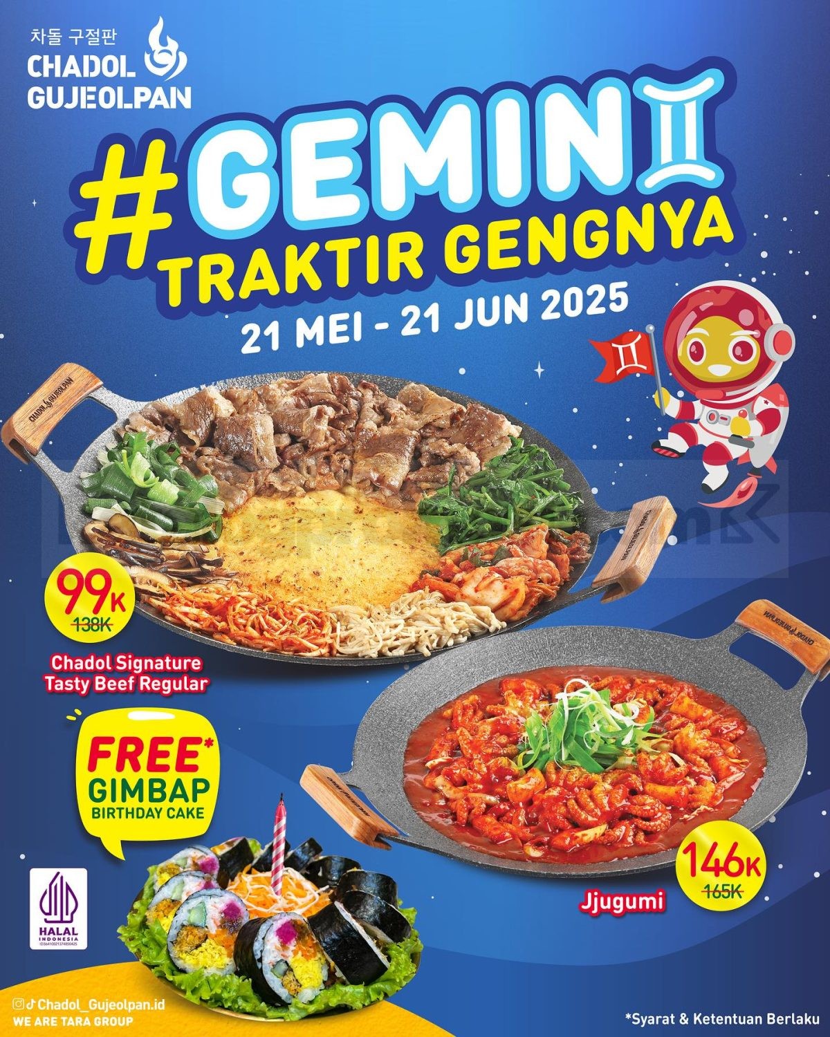 Promo Chadol Zodiac Tasty Beef Reg ini cocok banget buat treat diri sendiri atau ajak teman-temanmu makan bareng. Nikmatin daging empuk dan bumbu khas Chadol sambil merayakan ulang tahun dengan cara yang berbeda dan seru! ✨