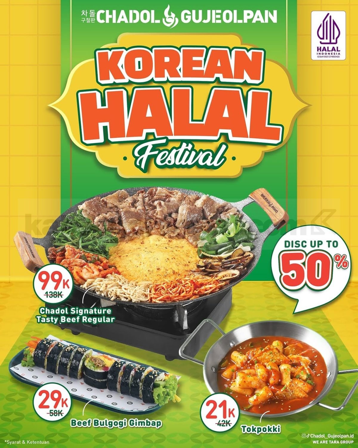 Promo Chadol Gujeolpan Holiday Specials Mulai Rp. 175.000 ini berlaku untuk dine-in setiap hari dan tidak dapat digabungkan dengan promo lain. Sebelum menikmati promo.