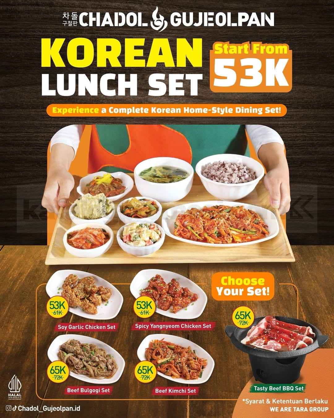 Dengan pilihan paket yang lengkap dan porsi yang pas untuk berbagi, Promo Chadol Gujeolpan Holiday Specials Mulai Rp. 175.000 cocok jadi agenda wajib saat kumpul bareng orang terdekat. Yuk, atur waktu dan nikmati momen liburan dengan suasana makan yang lebih hangat dan seru.