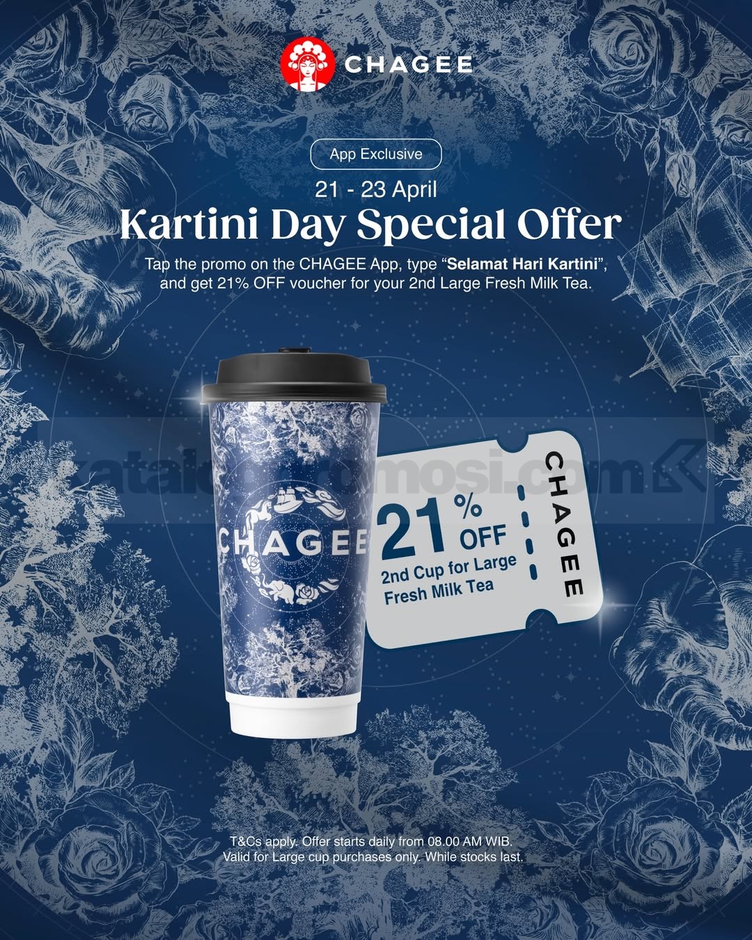 Promo CHAGEE Hari Kartini Diskon 21% Fresh Milk Tea untuk cup ke-2 via aplikasi berlaku mulai tanggal 21 April 2026 – 23 April 2026