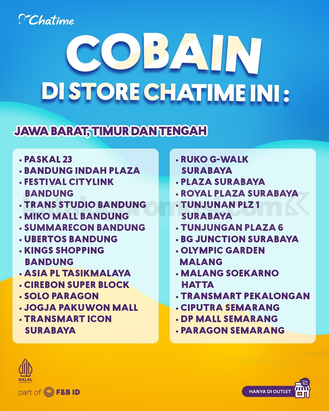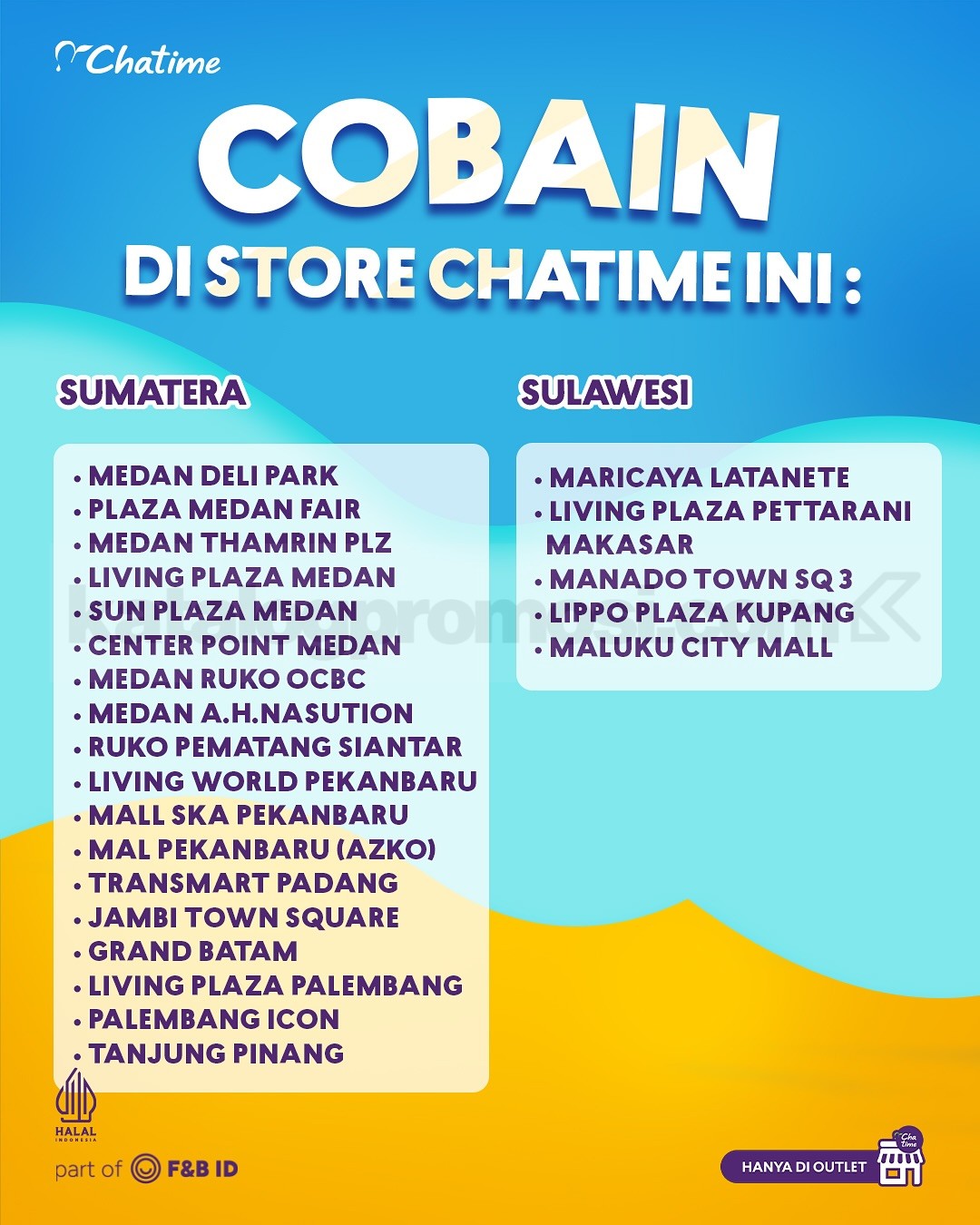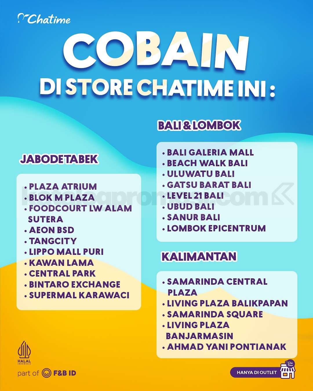 Promo hanya berlaku untuk pembelian langsung di store Chatime terpilih.