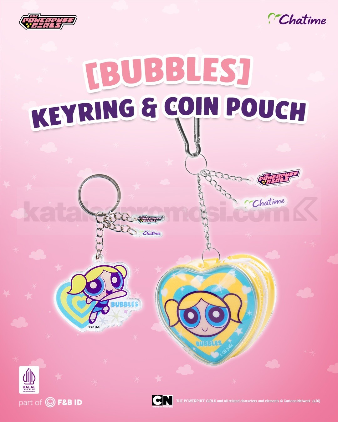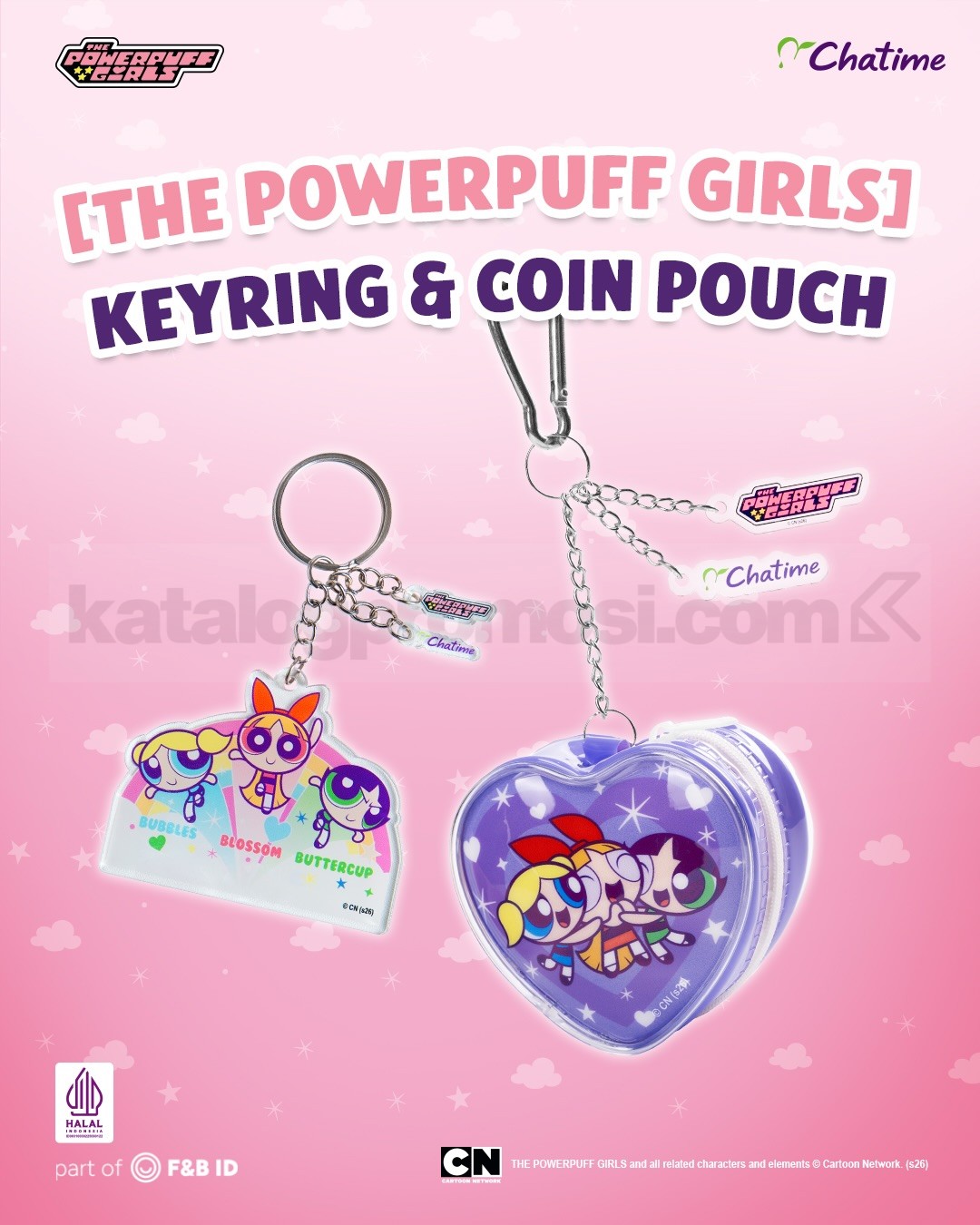Selain paket utama, poster lanjutan juga menampilkan detail merchandise eksklusif yang bisa dikoleksi, mulai dari Mojo Jojo Keyring sampai set keyring dan coin pouch berbentuk hati dengan karakter The Powerpuff Girls. Promo ini cocok buat temani liburan biar makin manis dan penuh energi ⚡️