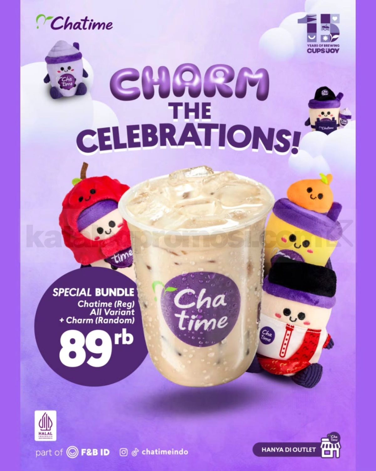 Promo Chatime Special Bundle 1 Minuman + 1 Charm cuma 89rb aja edisi 15 tahun berlaku selama periode program di seluruh outlet
