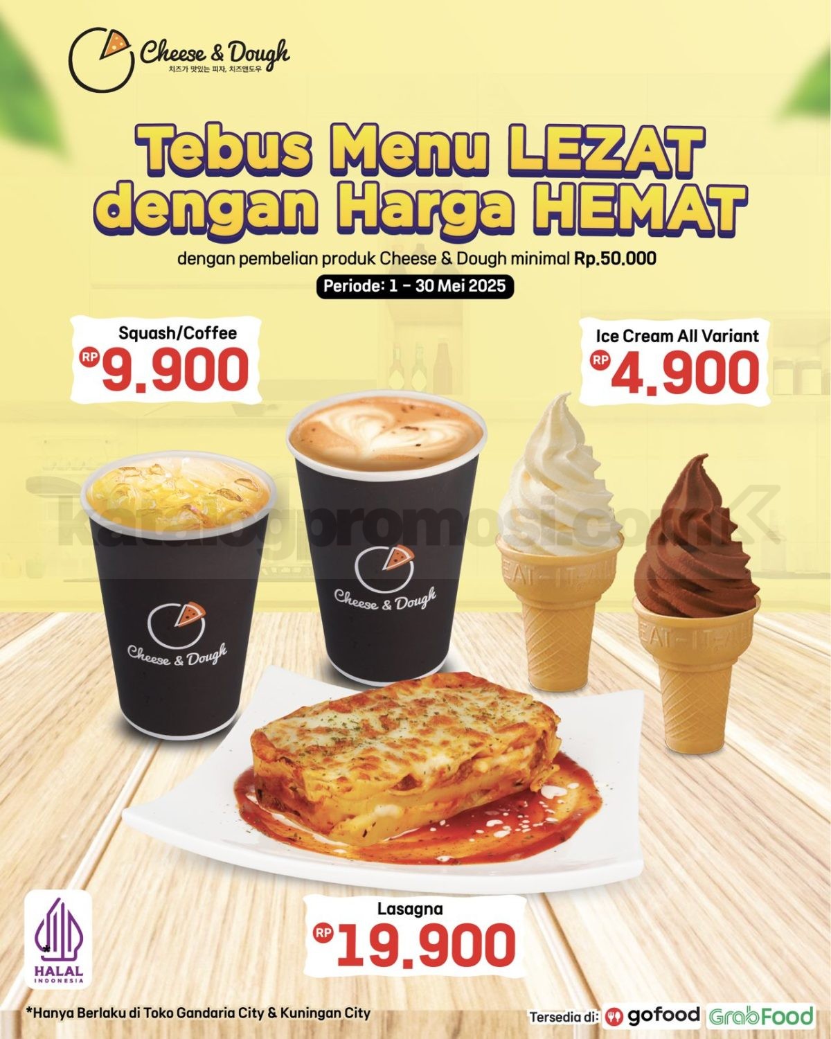 Tidak, promo hanya berlaku offline di semua toko Cheese & Dough.