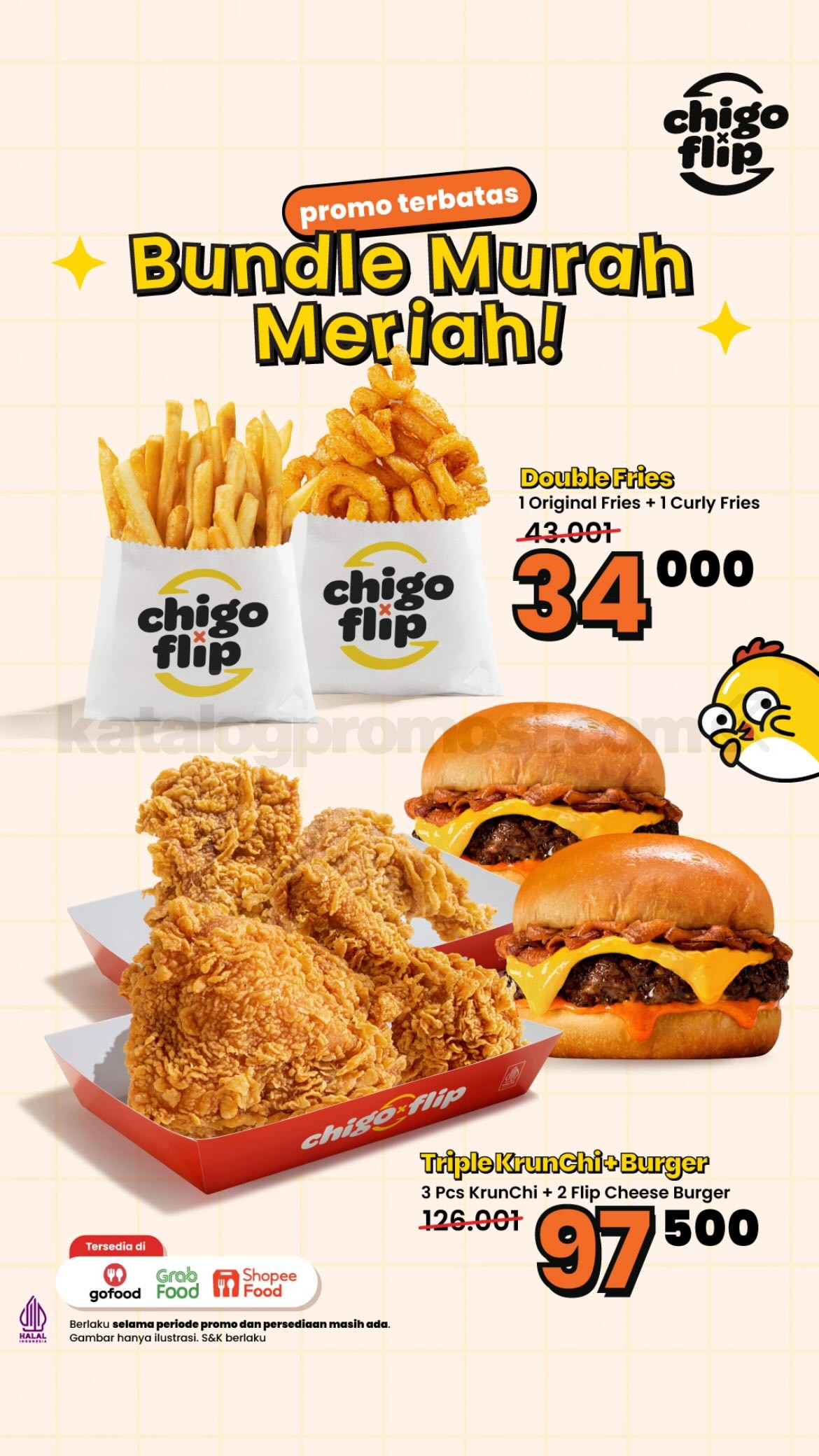 Promo Chigo x Flip Bundle Murah Meriah mulai dari Rp34.000. Tersedia di Aplikasi GoFood, GrabFood, dan ShopeeFood!