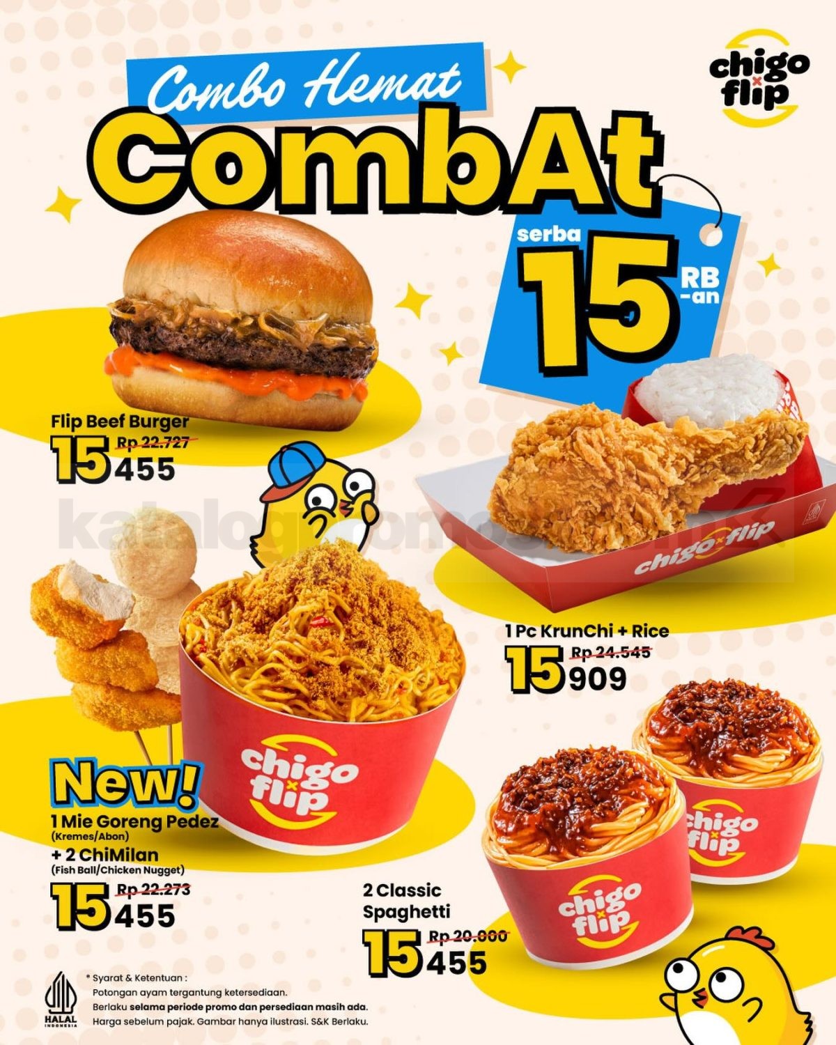 Lewat promo ini, kamu bisa menikmati beberapa menu pilihan dengan harga mulai Rp. 15 ribu saja. Kolaborasi Chigo dan Flip melalui program CombAt memberikan kesempatan bagi pelanggan untuk mencoba berbagai menu populer yang cocok untuk makan santai, jajan bareng teman, atau sekadar mengisi waktu lapar dengan pilihan makanan yang praktis dan mengenyangkan.