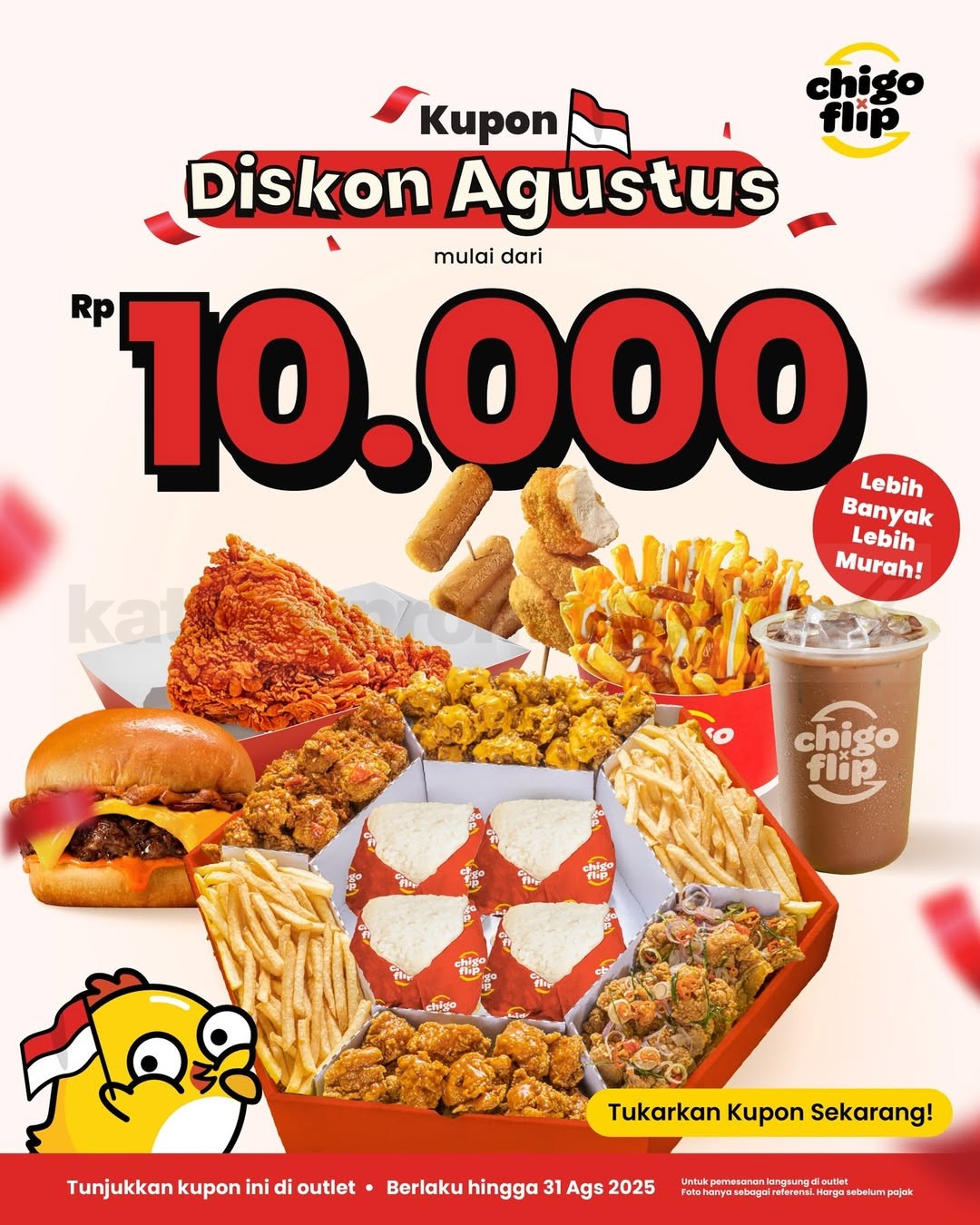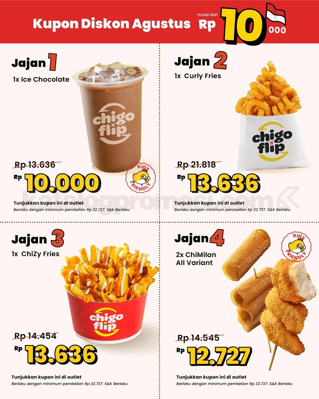 Promo Chigo x Flip Kupon Desember 2025 mulai Rp. 10.000, nikmati berbagai menu hemat & meriah + berlaku 1-31 Desember 2025 di seluruh outlet CHIGOFLIP.