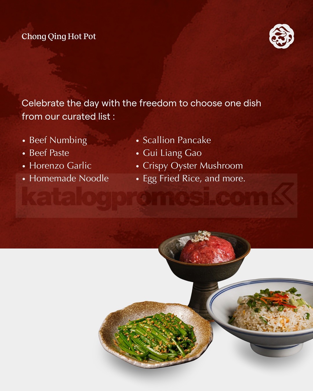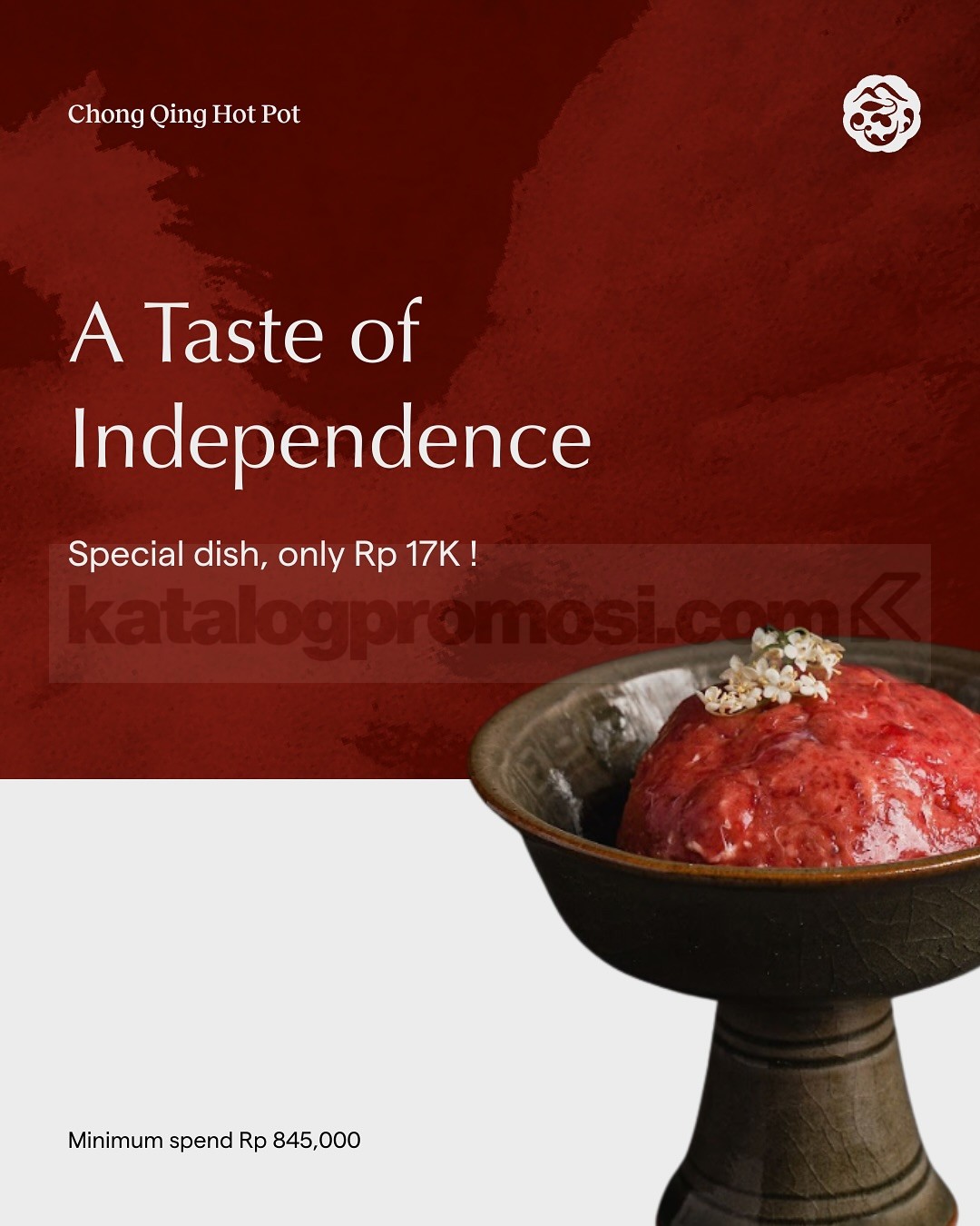 Rayakan Hari Kemerdekaan dengan sensasi hot pot autentik dari Chong Qing Hot Pot! Selama periode 16–18 Agustus 2025, nikmati special dish hanya Rp17.000 dengan minimum pembelian Rp845.000 dalam satu transaksi.
