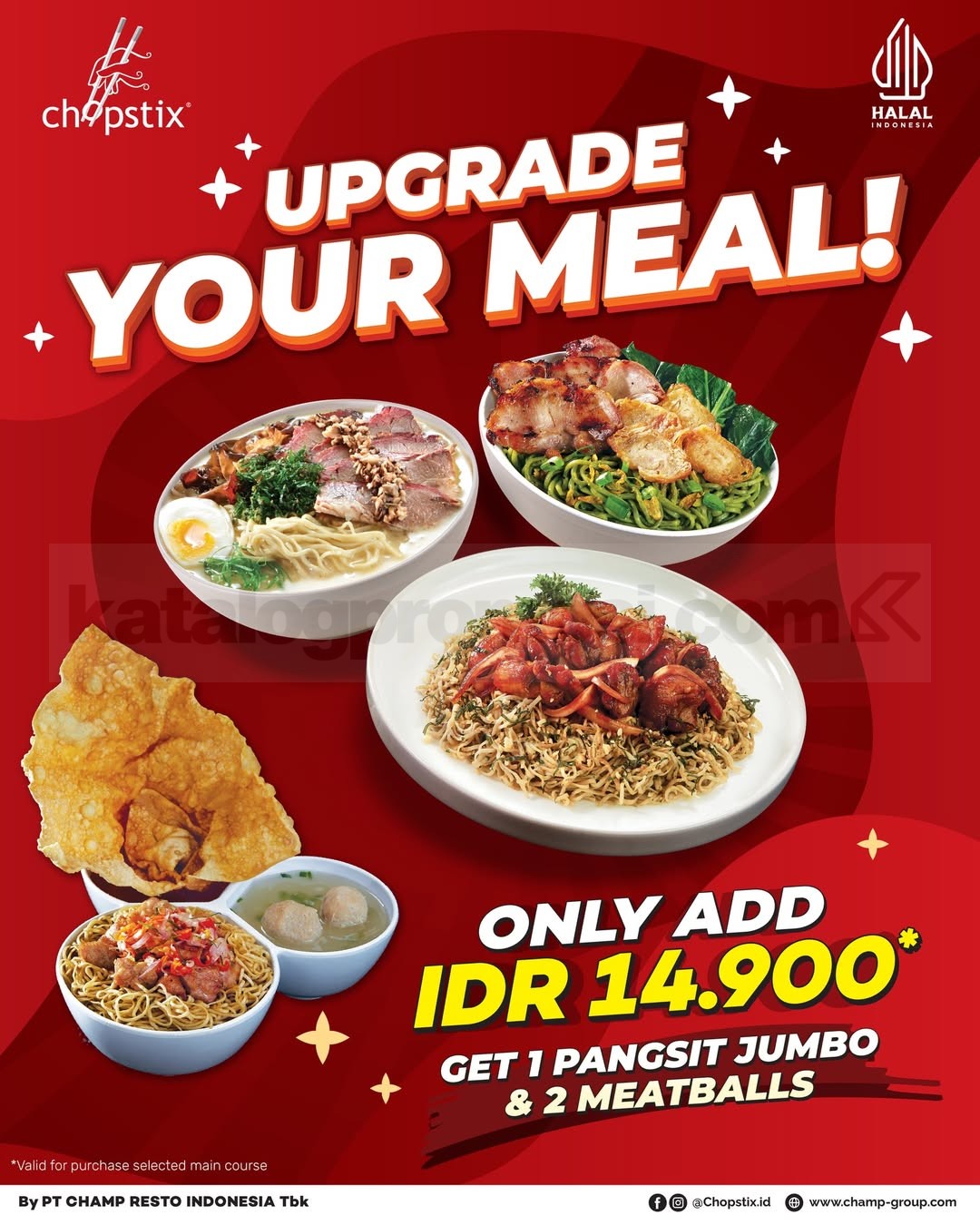 Lengkapi menu favoritmu dengan Promo Chopstix Upgrade Your Meal tambah Rp. 14.900 dan nikmati sensasi makan lebih puas tanpa ribet.