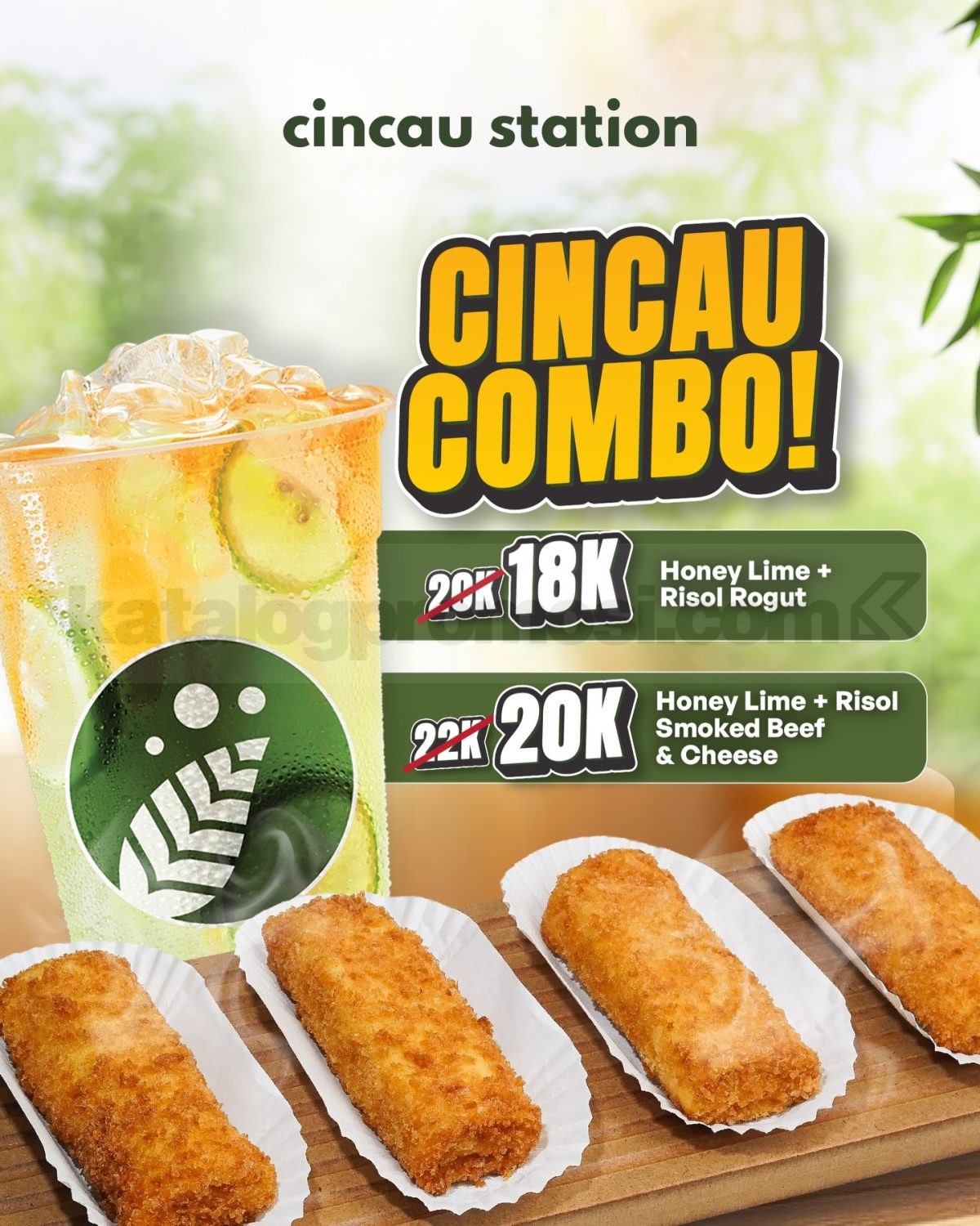 Promo Cincau Station Cincau Combo mulai Rp. 18.000 paket Honey Lime dan risol, berlaku selama periode promo di beberapa lokasi outlet.