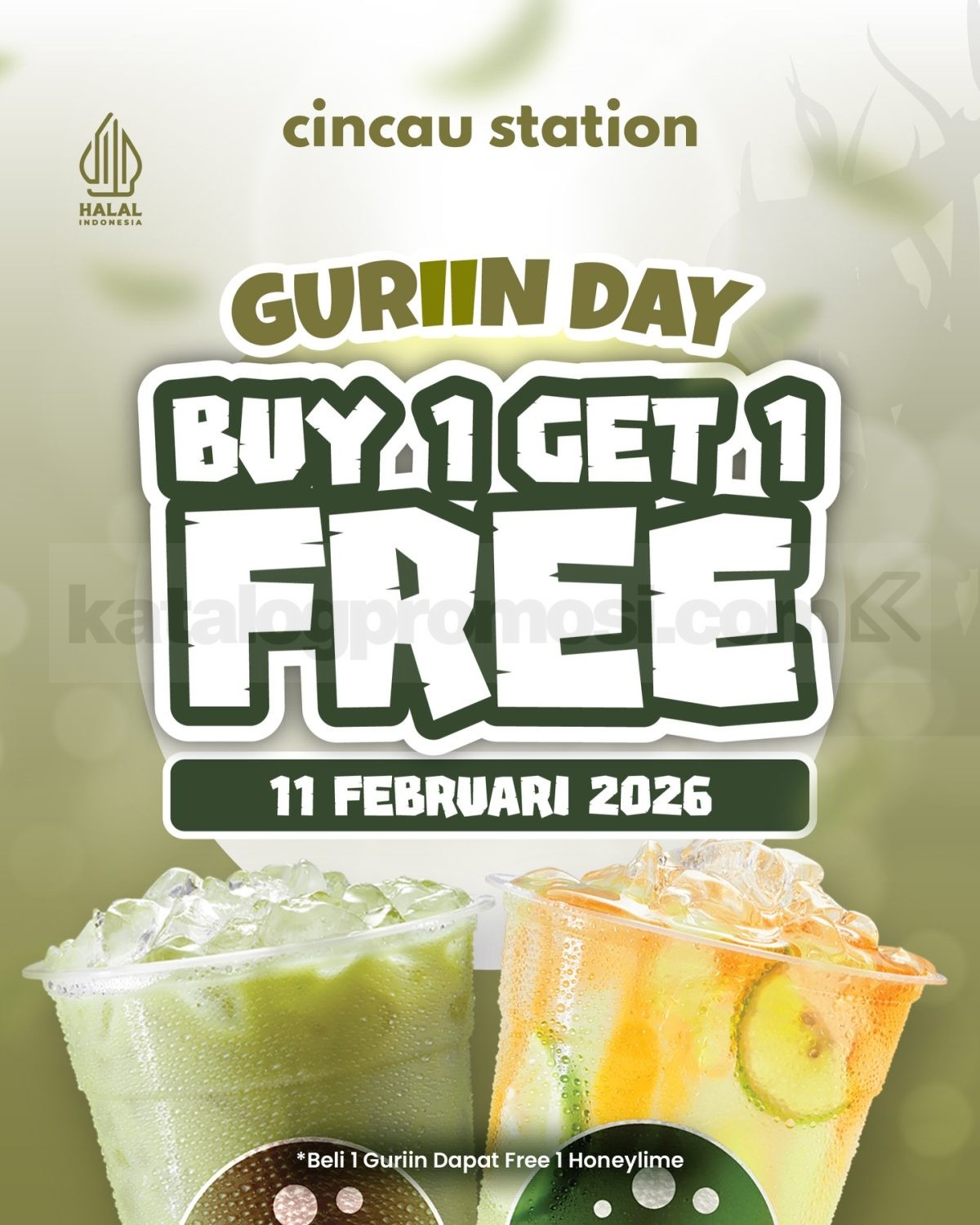 Promo Cincau Station Guriin Day beli 1 gratis 1, sensasi minuman segar untuk member Cincau Station, berlaku 11 Februari 2026 di lokasi tertentu.