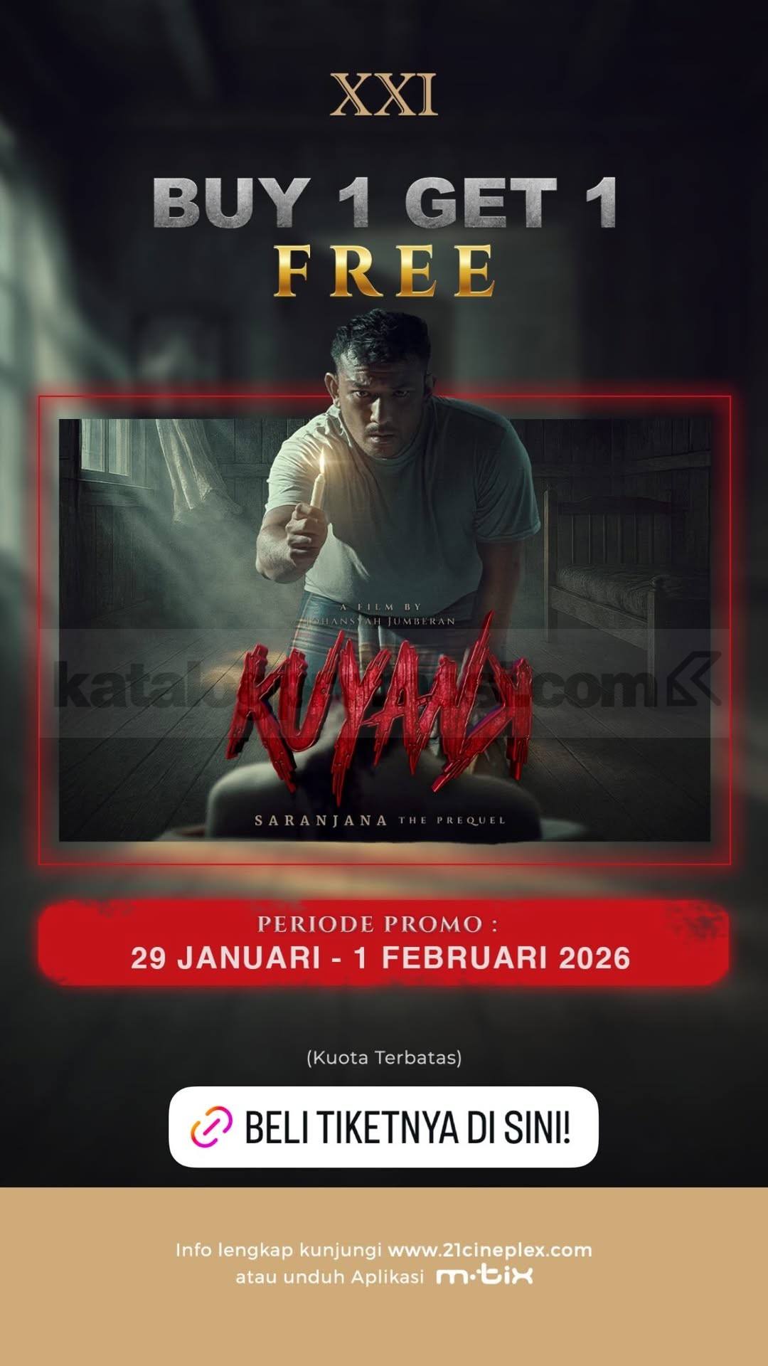 👉 Cek gambar promo Cinema XXI Buy 1 Get 1 Free Tiket Film Kuyank di bawah ini untuk lihat info singkat promonya secara visual 👀