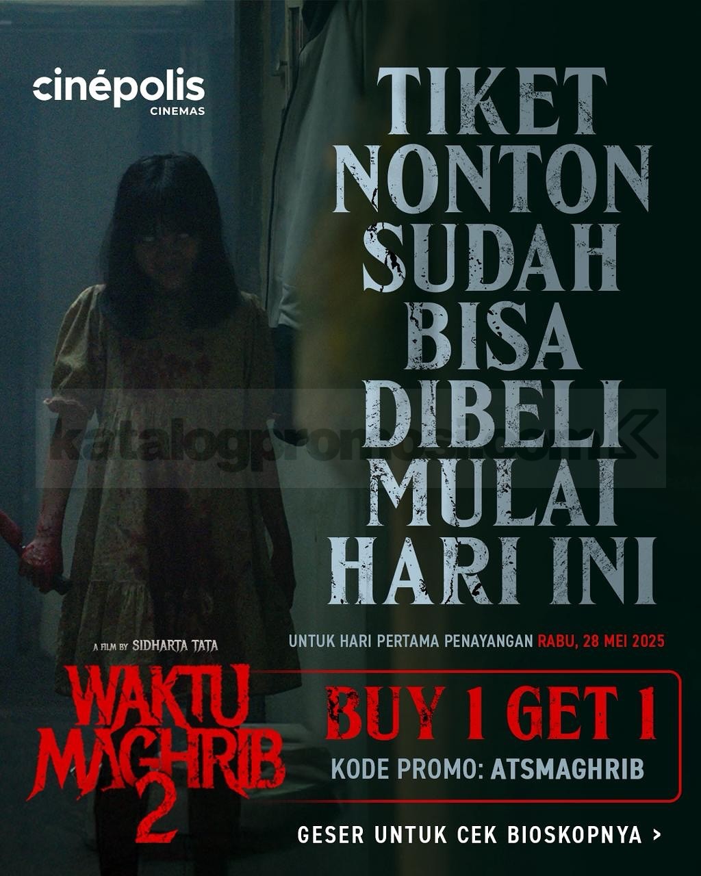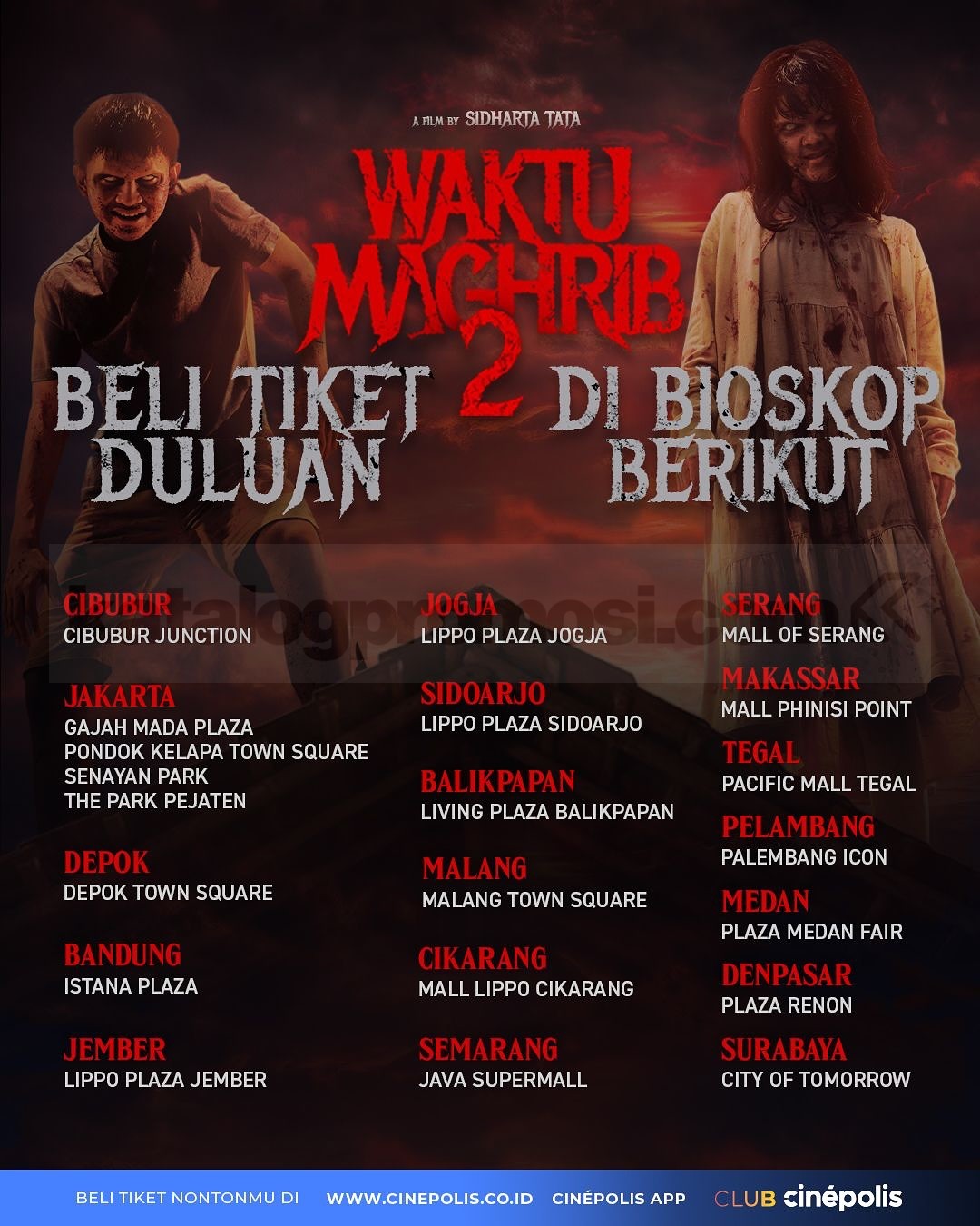 Tiket bisa dibeli mulai Rp. 25.000 melalui website dan aplikasi Cinépolis Indonesia.