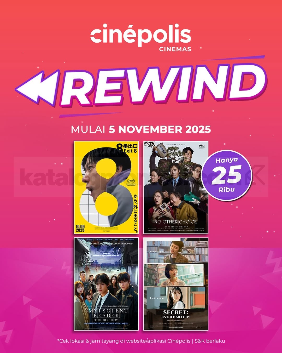 Promo Cinépolis Cinemas REWIND film mulai Rp. 25.000 nikmati film aksi, misteri & emosi menarik berlaku mulai 5 November 2025 di seluruh outlet