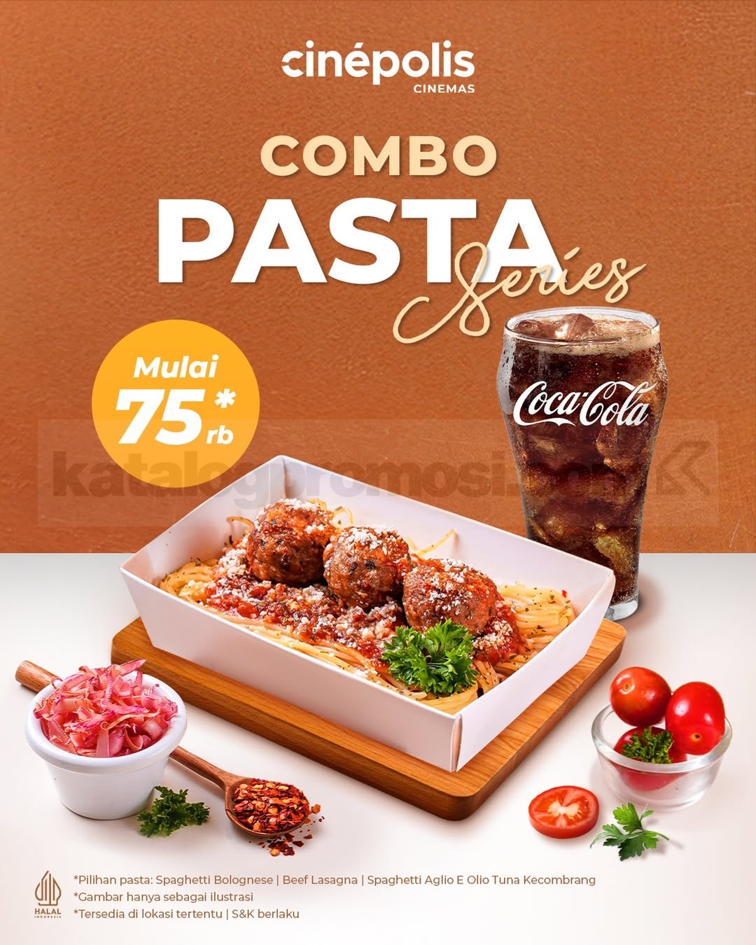 Promo Cinépolis Combo Pasta Series mulai Rp. 75.000 nikmati pasta hangat untuk nonton berlaku selama persediaan masih ada di lokasi tertentu