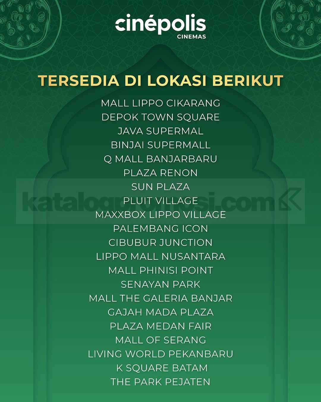 Promo ini tersedia di berbagai lokasi Cinépolis pilihan, jadi kamu bisa menyesuaikan dengan bioskop terdekat. Semua paket menghadirkan pengalaman ngemil tematik Ramadan dengan sentuhan rasa markisa yang unik, menjadikan momen nonton terasa lebih spesial dan memorable.
