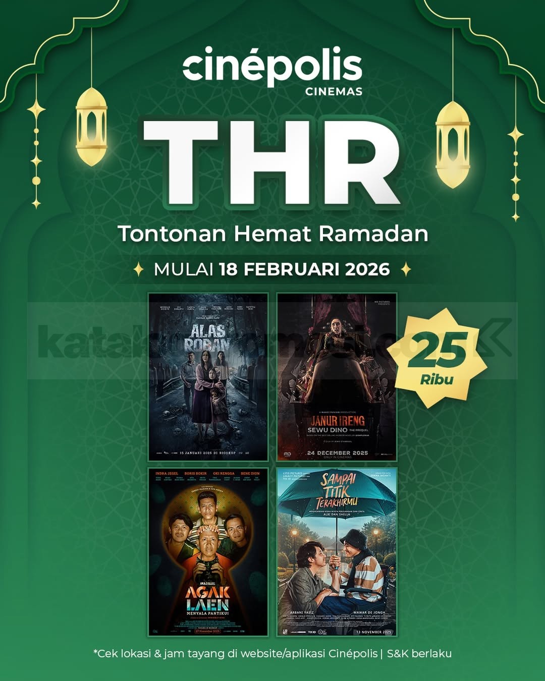 Promo Cinépolis Tontonan Hemat Ramadan Rp. 25 ribu nonton film hits hemat bareng teman dan keluarga berlaku mulai tanggal 18 Februari 2026 di seluruh outlet.