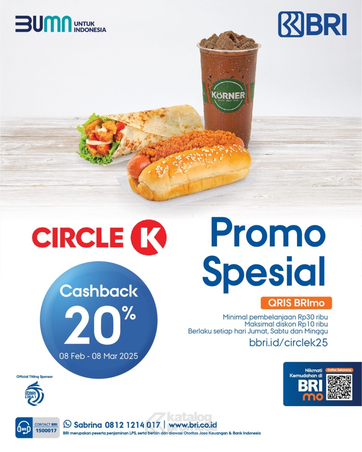 Promo CIRCLE K SPESIAL BRI – DAPATKAN CASHBACK 20% khusus transaksi pakai BRImo setiap Jumat – Minggu s.d 31 Mei 2025