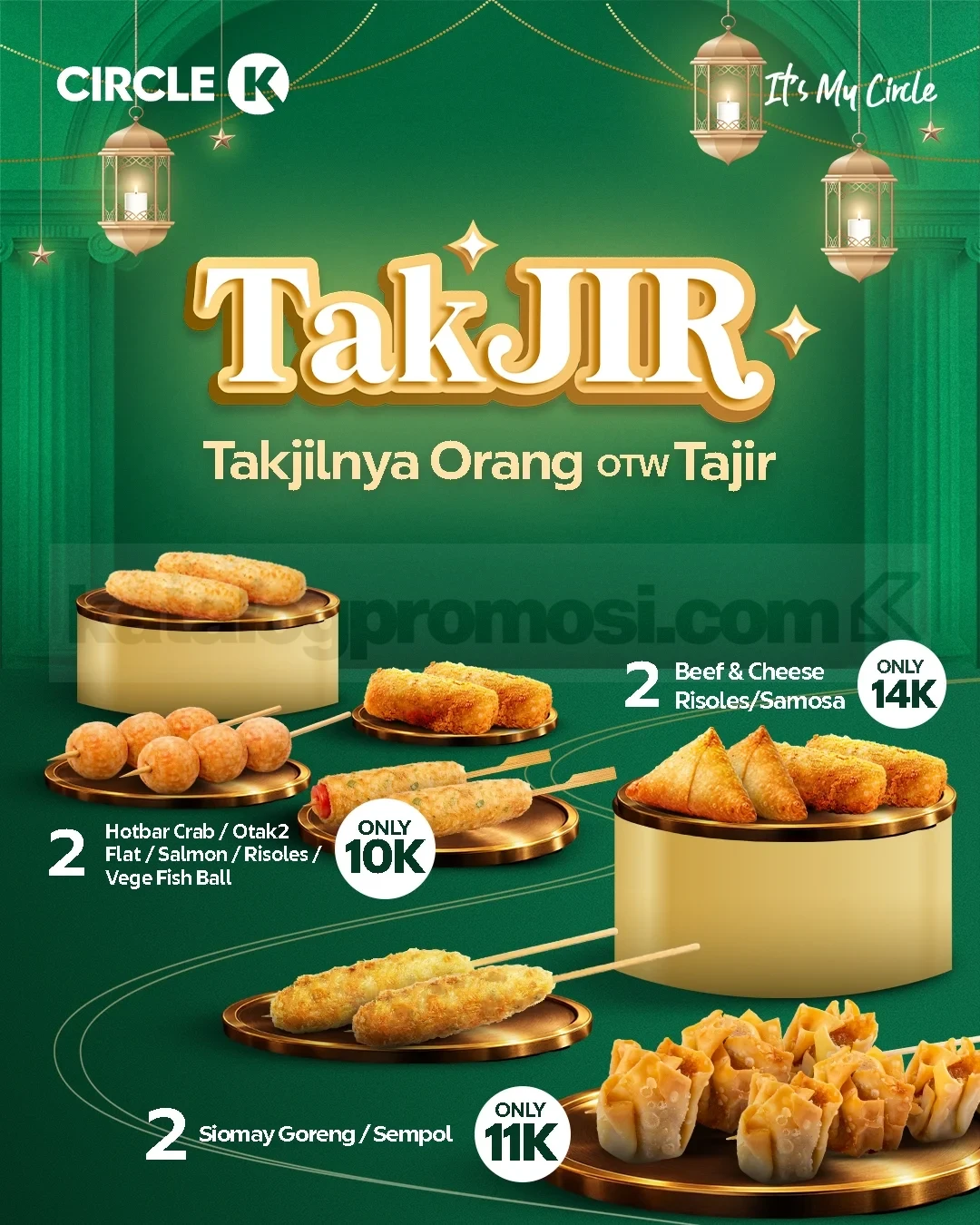 Promo takjil Circle K ini cocok buat kamu yang ingin berburu snack praktis saat berbuka puasa. Pilihan menunya juga cukup beragam mulai dari olahan seafood sampai snack goreng favorit yang cocok disantap bareng Circle tandeman kamu biar makin hemat dan bisa sharing.