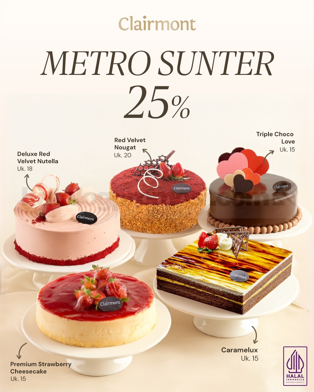 👉 Cek gambar promo Clairmont Metro Sunter diskon 25% di bawah ini untuk lihat detail cake yang bikin ngiler!