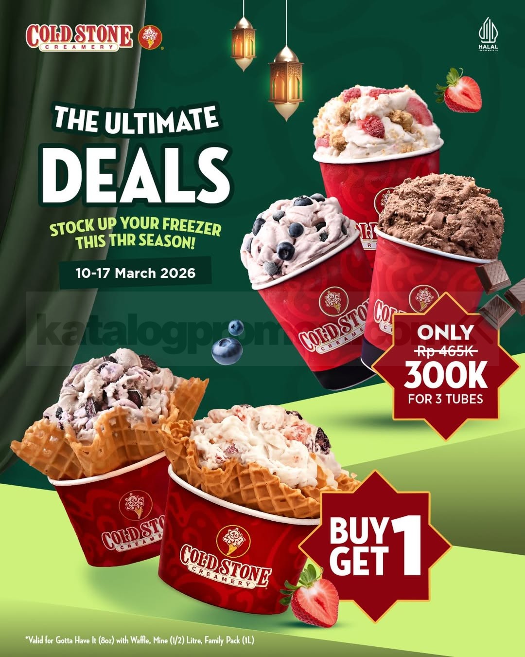 Promo berlaku untuk ukuran Gotta Have It (8oz) with waffle, Mine (1/2 liter), dan Family Pack (1 liter).