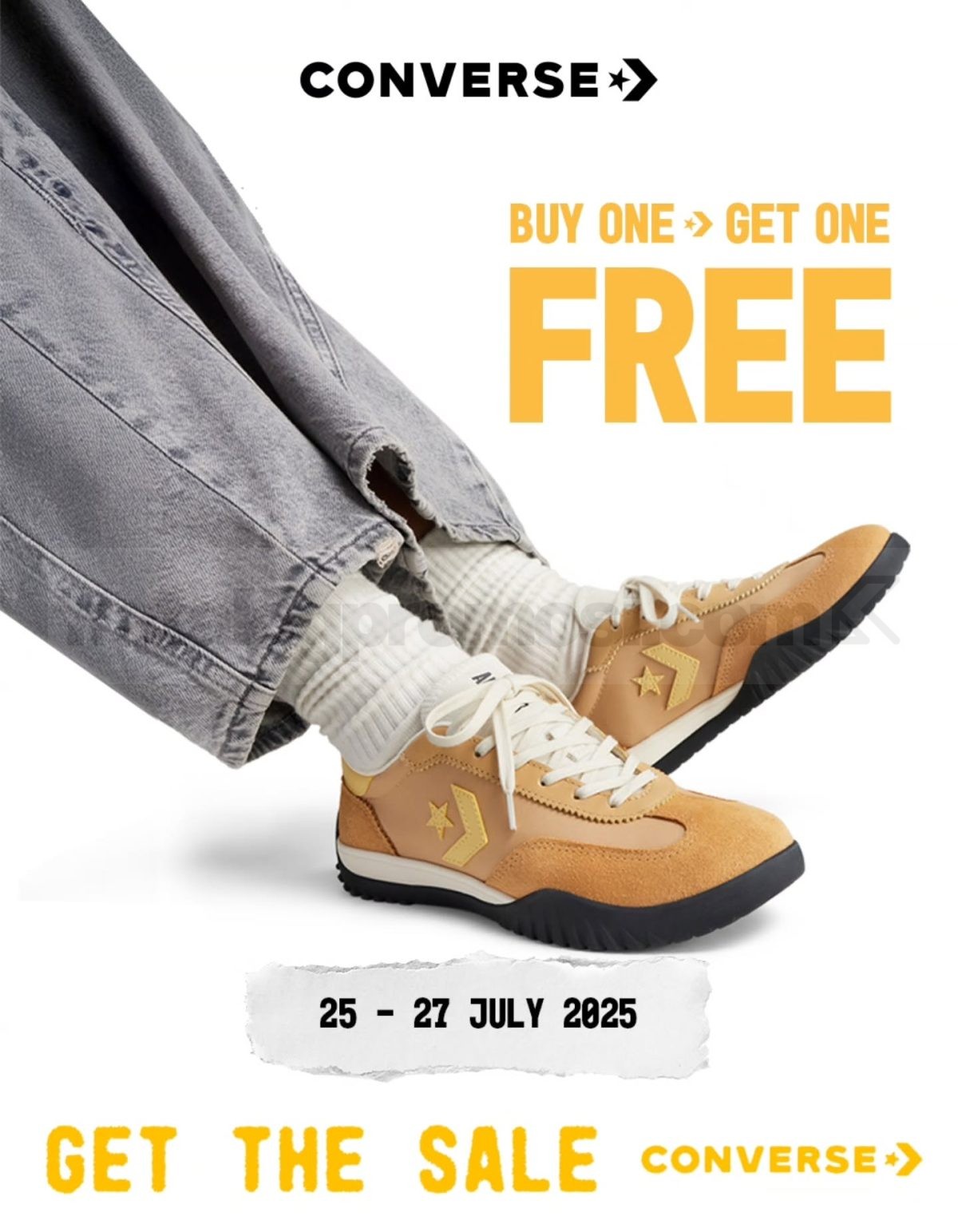 Promo CONVERSE Buy 2 Get 20% Off berlaku 31 Oktober – 2 November 2025 untuk produk apparel dan footwear, termasuk sandal, di seluruh store Converse Indonesia.