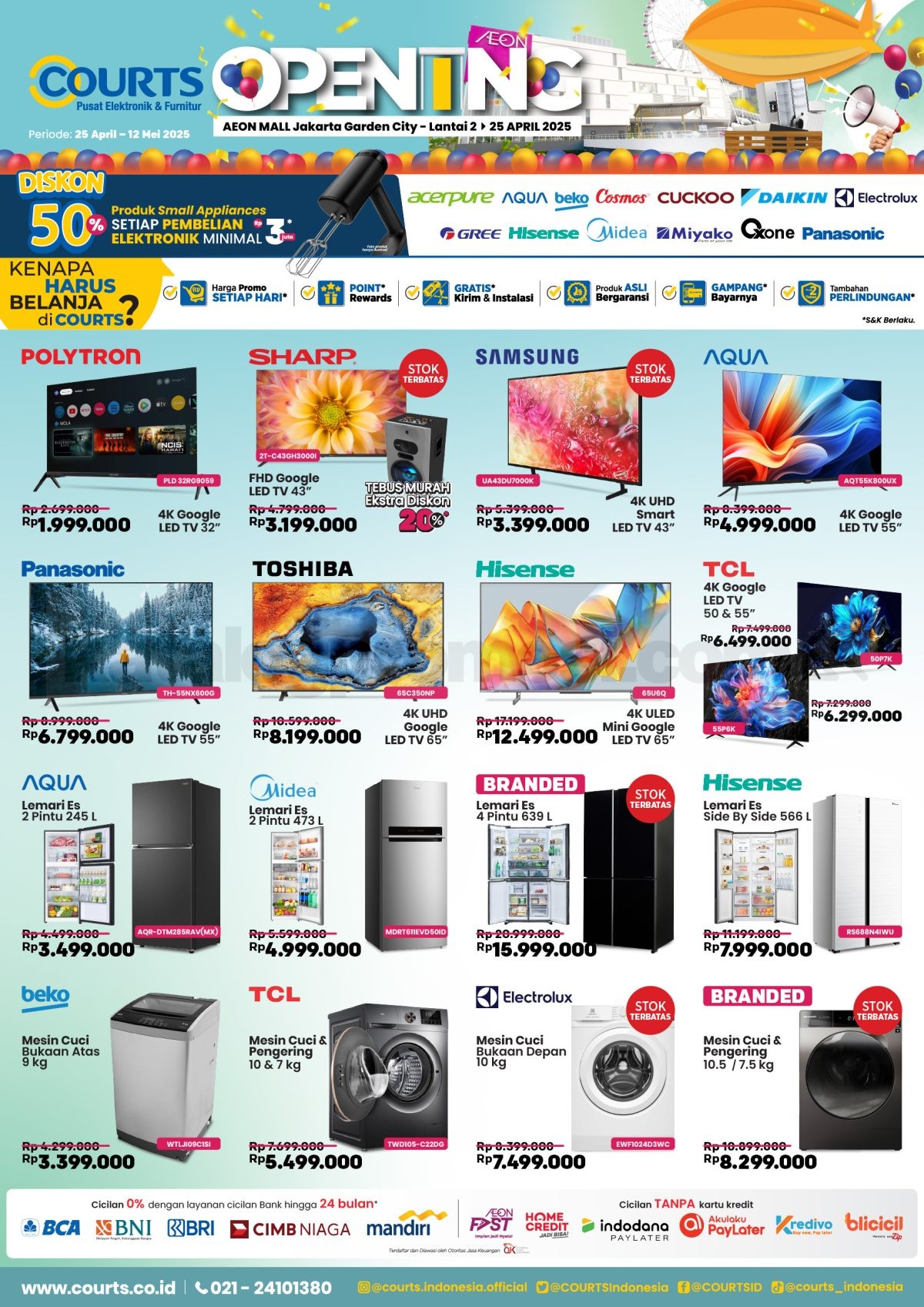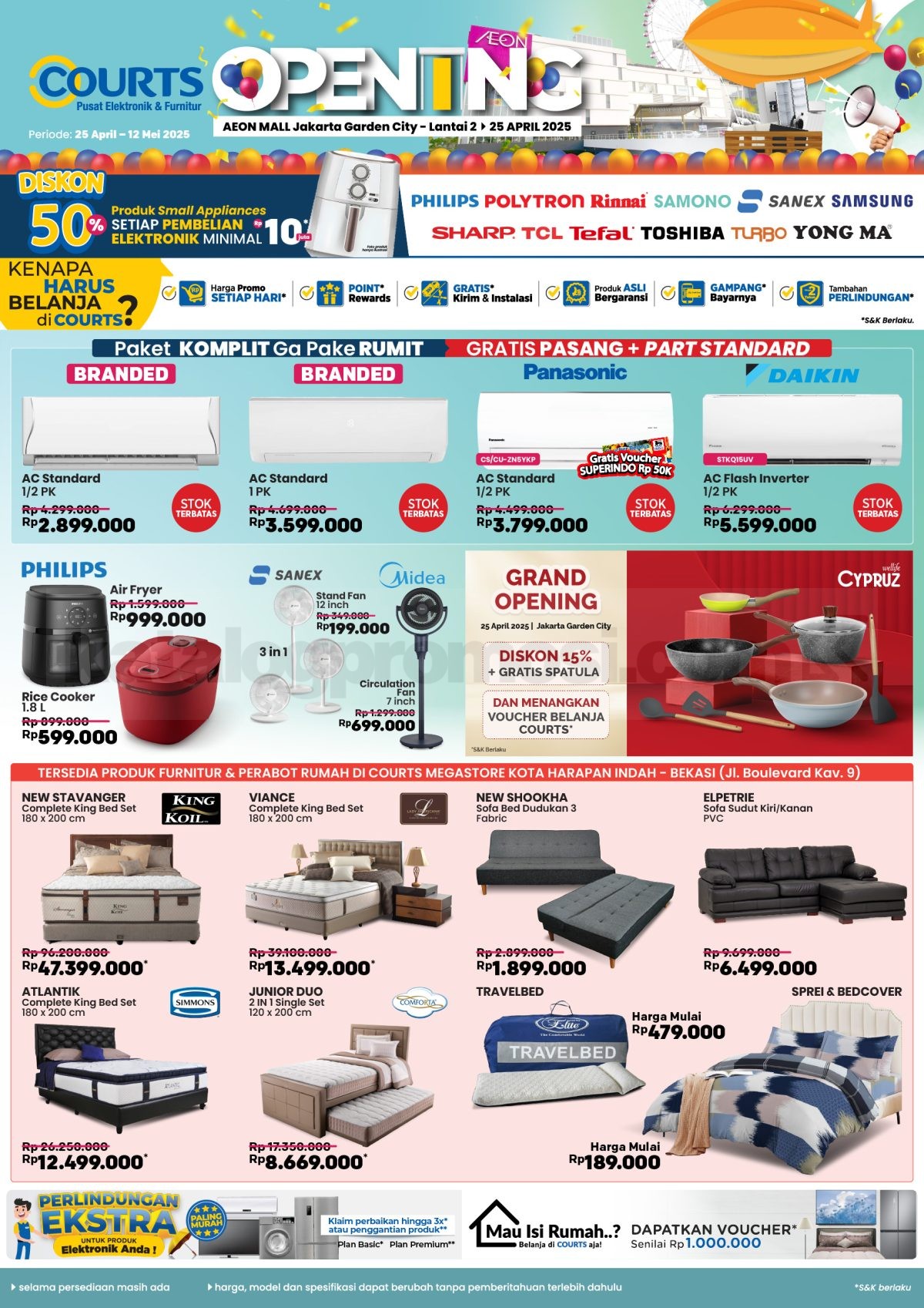 Promo COURTS Grand Opening COURTS AEON MALL Jakarta Garden City berlaku mulai tanggal 25 April – 12 Mei 2025