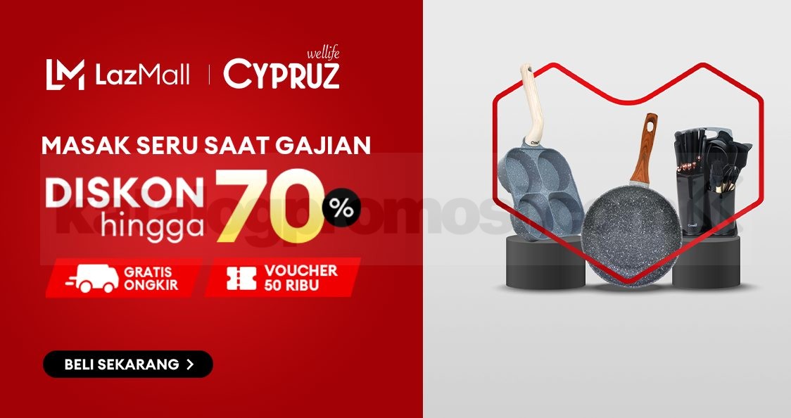 Lagi cari peralatan dapur yang kece dan fungsional? Promo Cypruz di LazMall lagi banjir diskon gede-gedean, lho! Mulai dari tableware, cookware, bakeware, drinkware, electrical sampai kitchenware kekinian. Semua dibanting harganya sampai 70%. Plus, ada gratis ongkir dan voucher Rp50 ribu buat kamu yang belanja saat gajian! 🎉