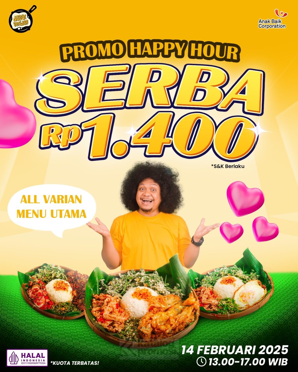Mau dapetin makan enak? Promo Dadar Beredar ini pas banget buat kamu yang pengen makan praktis, hemat, tapi tetep puas. Paket pengedar ini mulai dari Rp29Ribuan aja, lho! Cocok banget buat kamu yang pengen Foodies Hemat tapi tetep ga mau kompromi soal rasa. Jadi, tunggu apa lagi? Order sekarang juga dan nikmatin promo Dadar Beredar Online Delivery Paket Pengedar mulai Rp29Ribuan yang super kece ini! 🍽️✨