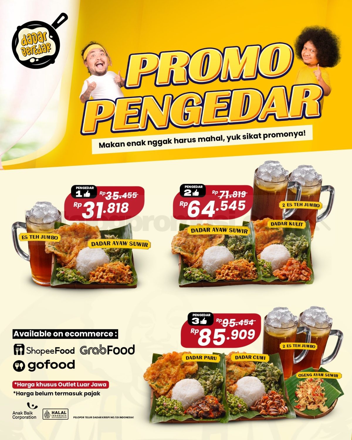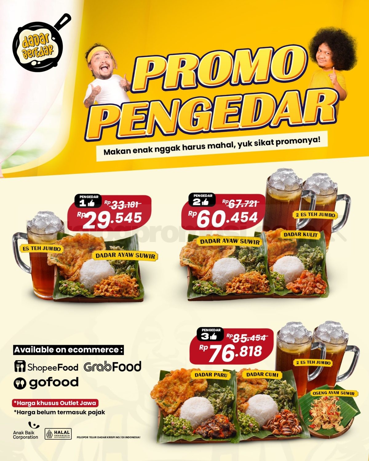 Nikmati promo Dadar Beredar Online Delivery Paket Pengedar mulai Rp29Ribuan sekarang juga! Jangan sampai ketinggalan, langsung klik dan order lewat outlet terdekat atau platform e-commerce favorit kamu! Makan enak, hemat, dan praktis cuma dengan paket pengedar dari Dadar Beredar! 🚀🍴