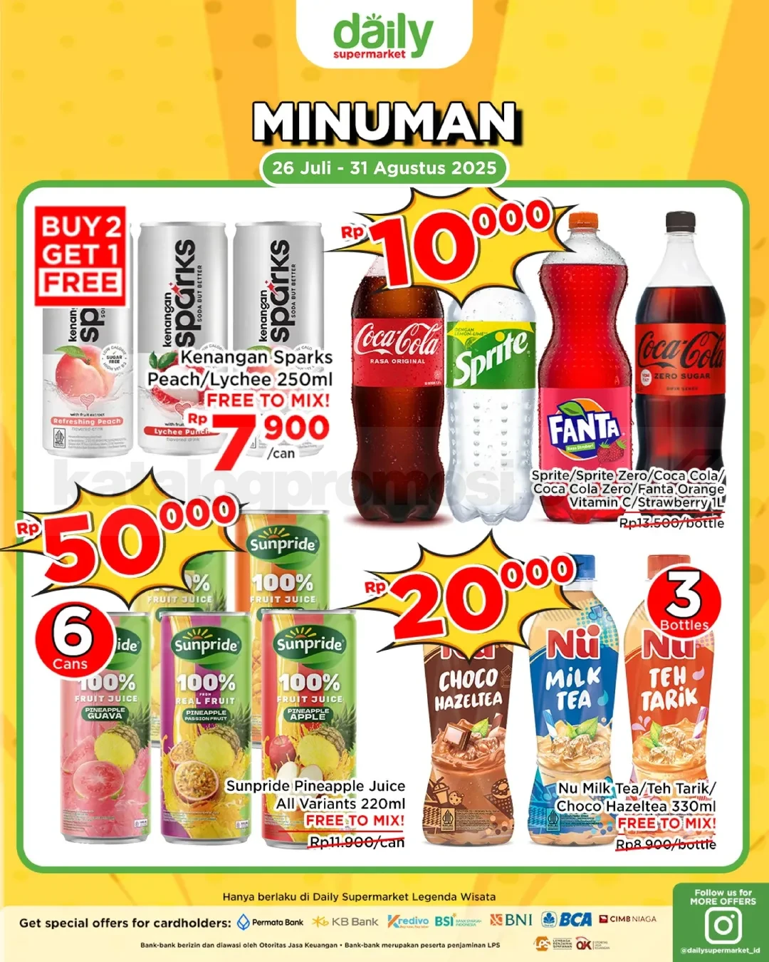- Sprite/Fanta/Coca-Cola 1L All Variants → Rp. 10.000/bottle