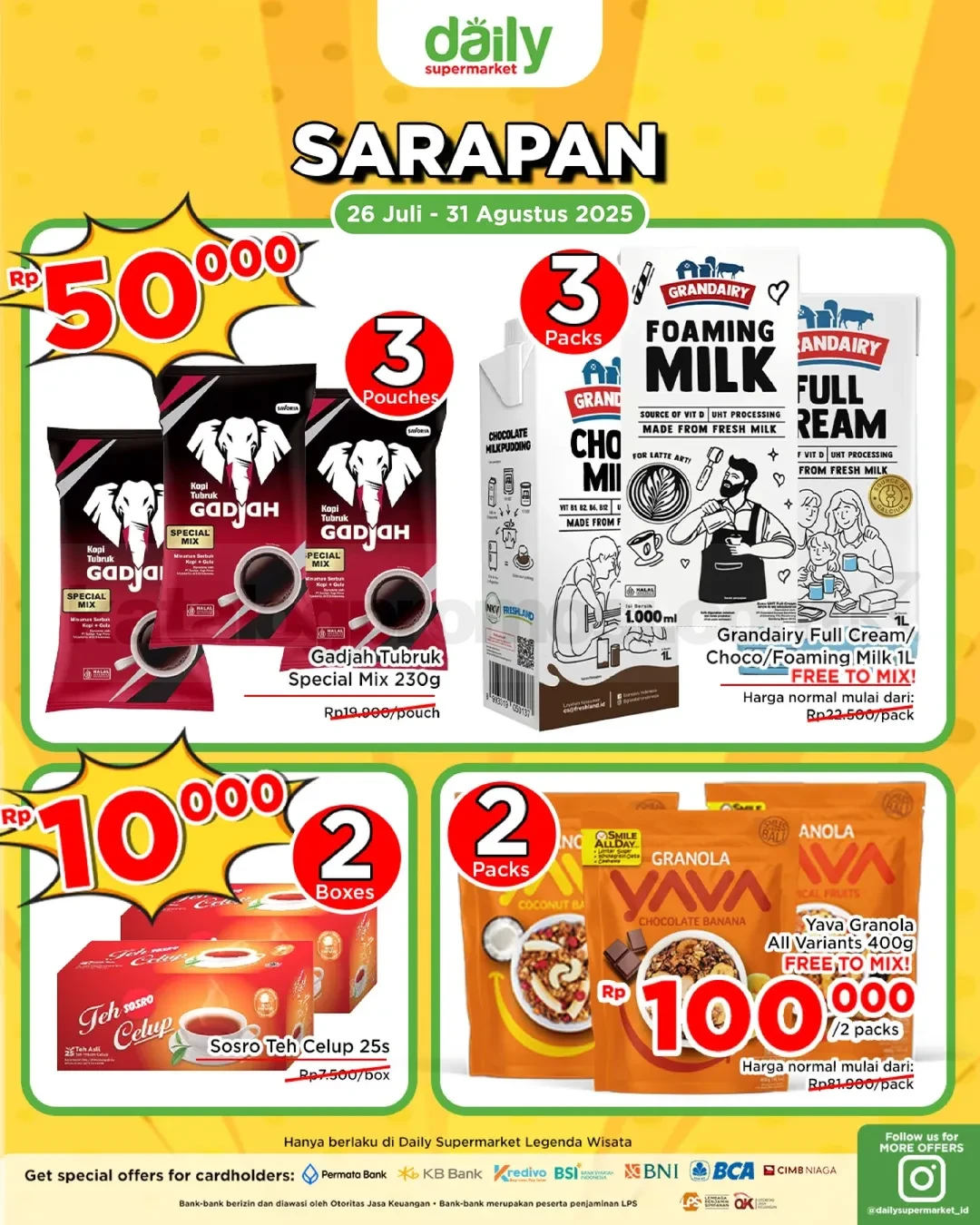 Promo berlaku mulai 26 Juli sampai 31 Agustus 2025 (kecuali jika disebutkan lain), dan tersedia langsung di lokasi. Kalau kamu tinggal di area sekitar, ini saat yang pas buat mampir dan belanja segala kebutuhan harian tanpa harus jauh-jauh!