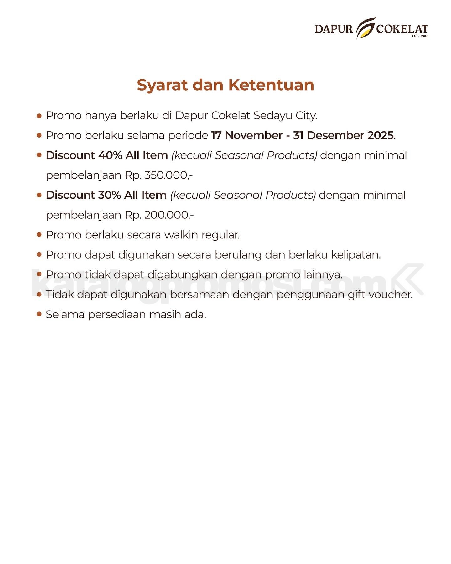 Promo hanya berlaku di Dapur Cokelat Sedayu City.