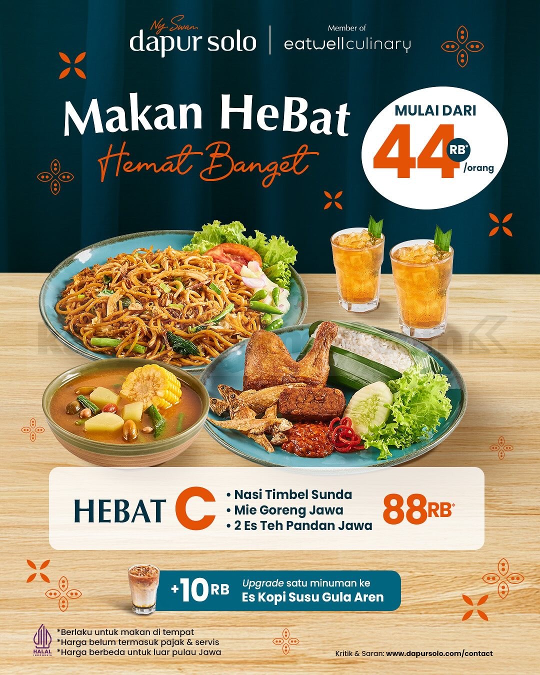 Promo ini pas banget buat makan siang atau santai sore bareng teman, keluarga, atau pasangan. Selain harga hemat, kamu bisa langsung menikmati hidangan di tempat dan merasakan kualitas rasa Dapur Solo yang legendaris. 🥳