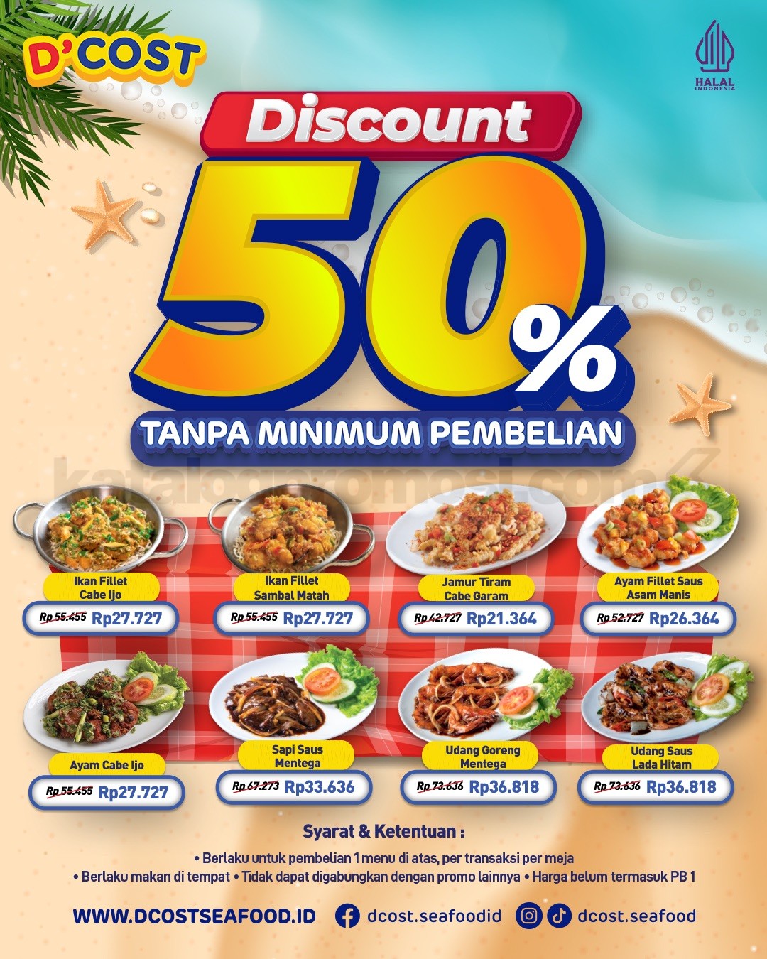 Diskon hingga 50% hanya berlaku untuk makan di tempat.