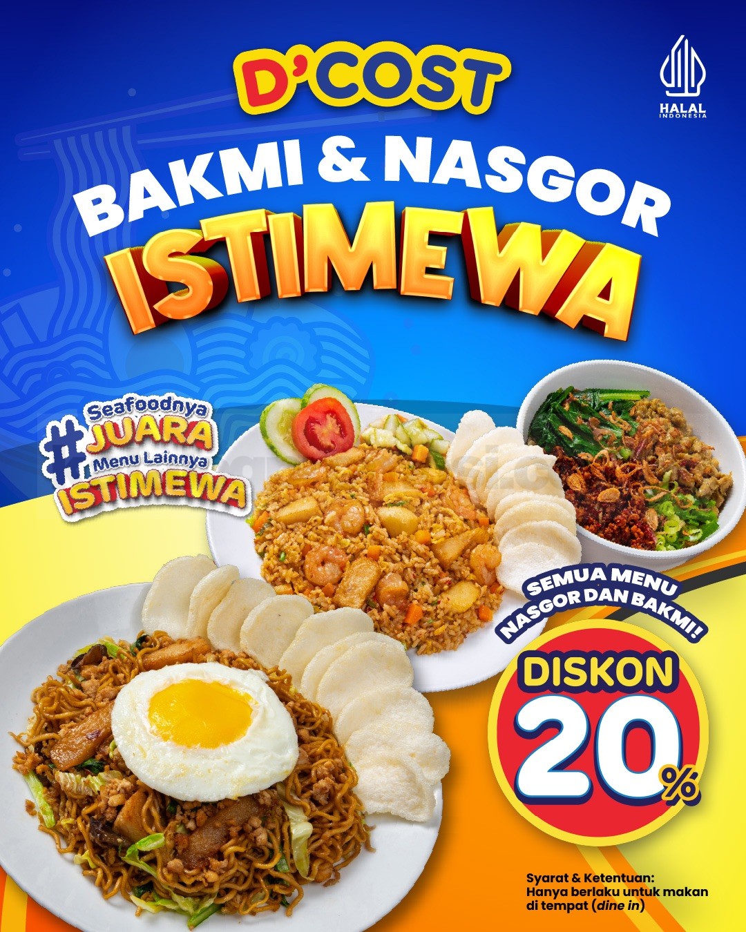 - Diskon 20% untuk semua menu Nasi Goreng dan Bakmi khusus makan di tempat.