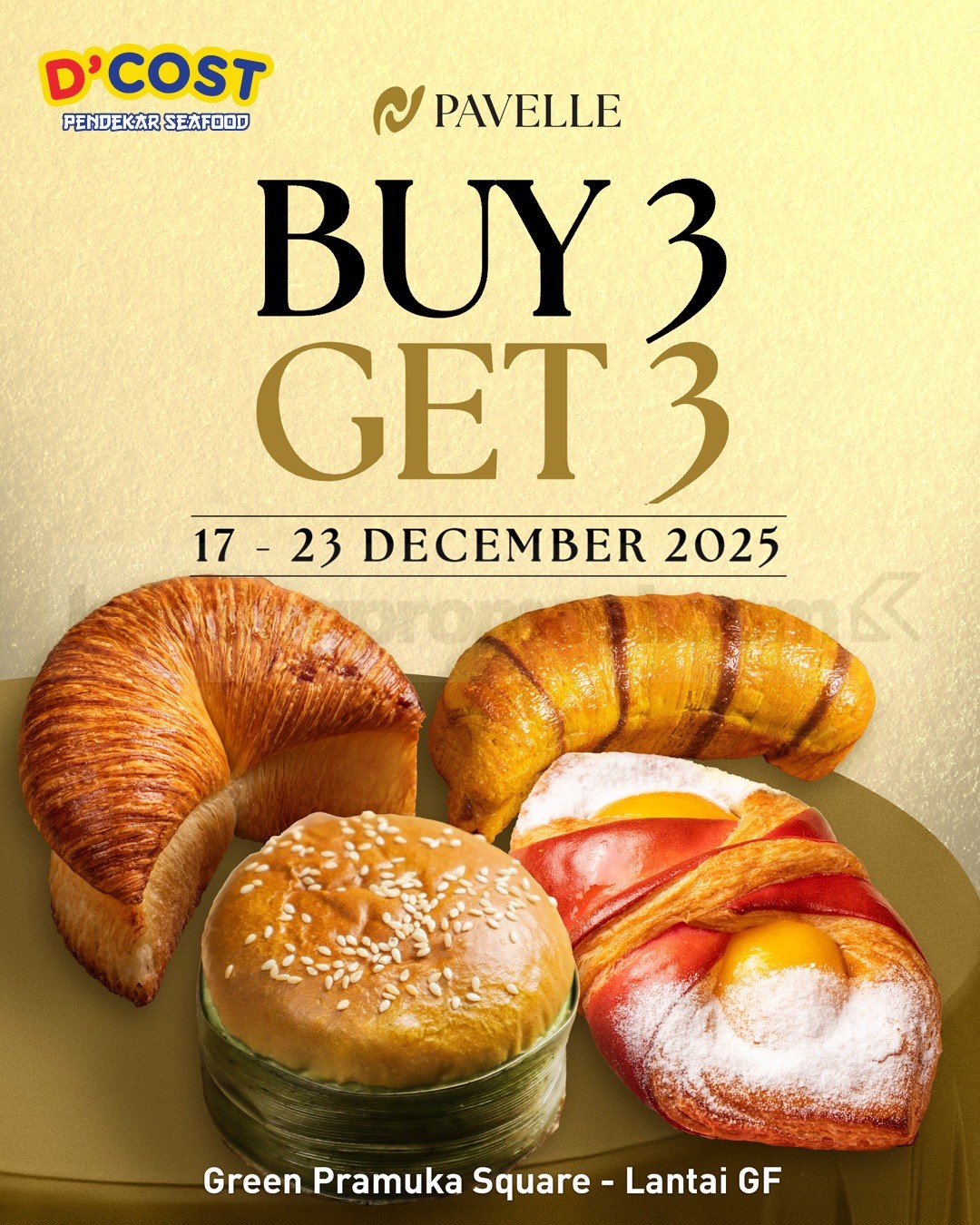 Promo Buy 3 Get 3 Pavelle Bakery berlaku tanggal 17 – 23 Desember 2025.