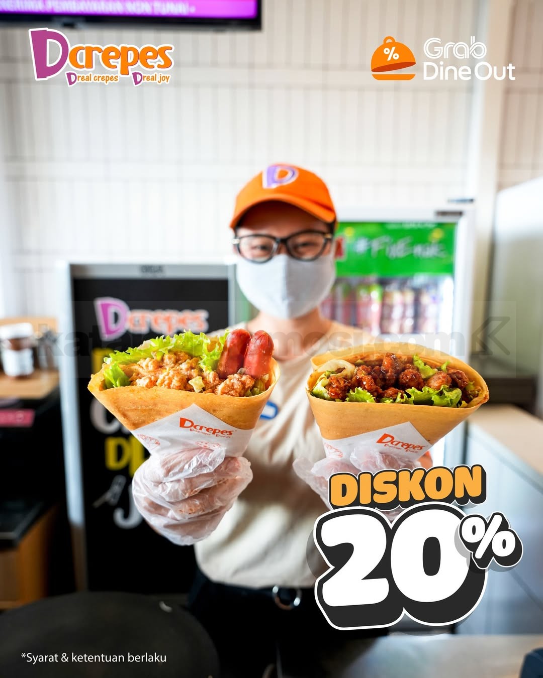 π Cek gambar promo Dcrepes GrabFood Dine Out Deals Diskon 20% di bawah ini untuk lihat detail penawarannya π
