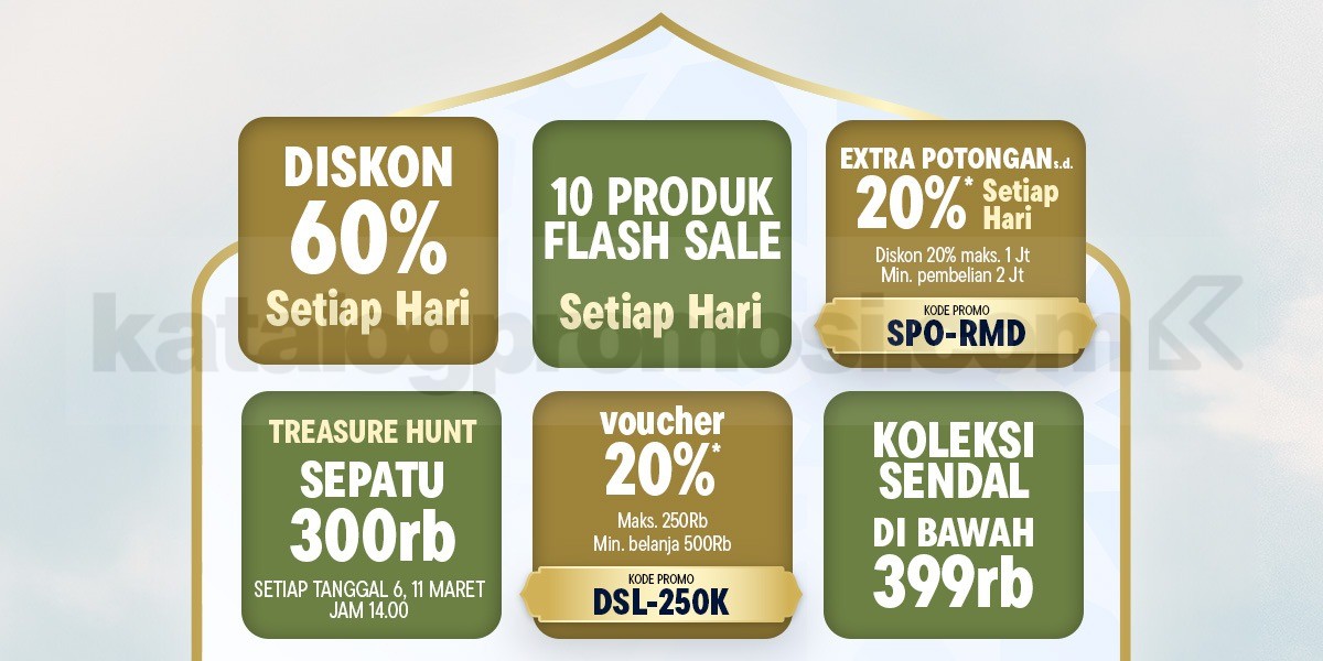 • Voucher belanja kode DSL-250K memberikan potongan 20% dengan maksimal potongan Rp. 250.000 dan minimal belanja Rp. 500.000.
