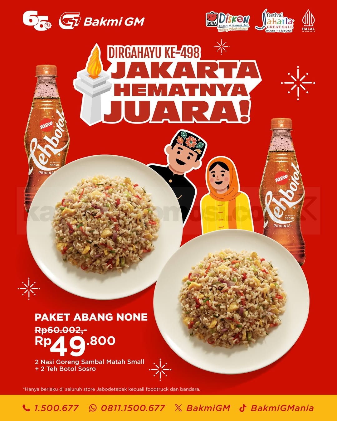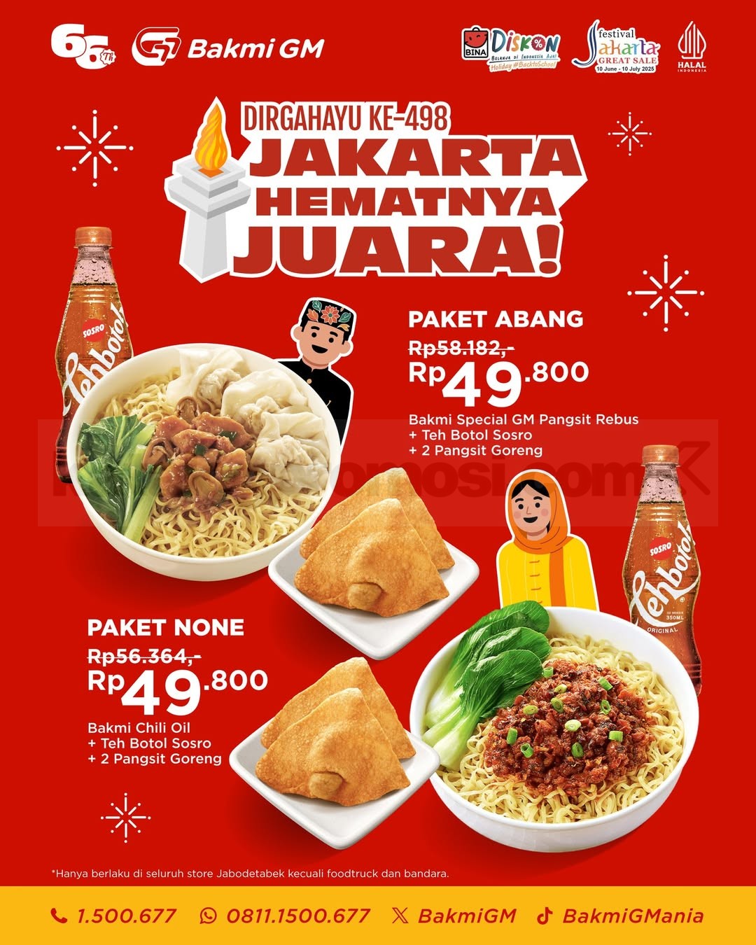 Paket ini cuma berlaku 14β25 Agustus 2025, jadi jangan sampai kelewatan. Yuk, nikmati menu favoritmu di Bakmi GM, pasti untung, uenak, dan bikin doyan! Hubungi hotline 1.500.677 atau WA 0811-1500-677 untuk info lengkap.