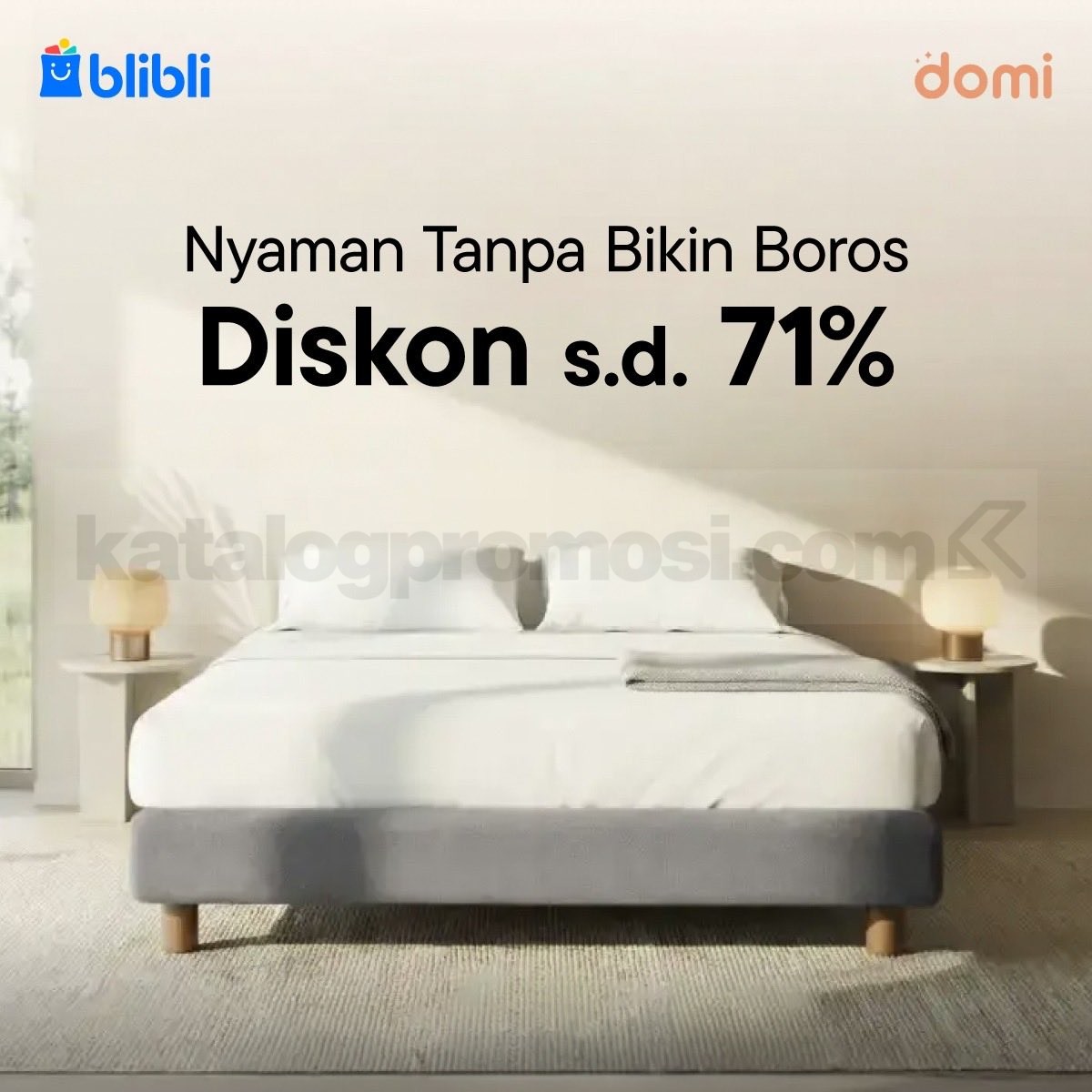 Promo Domi Bed Diskon hingga 71% nikmati kualitas tidur premium dengan harga hemat, checkout via Blibli berlaku 25 April 2026 – 30 April 2026.