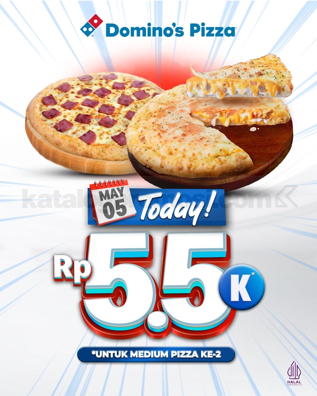 Promo Dominos 5.5 Flash Sale balik lagi dan kali ini makin gila! Hanya hari ini aja, kamu bisa tebus hemat pizza medium ke-2 cuma Rp5.500 aja! đ±âš
