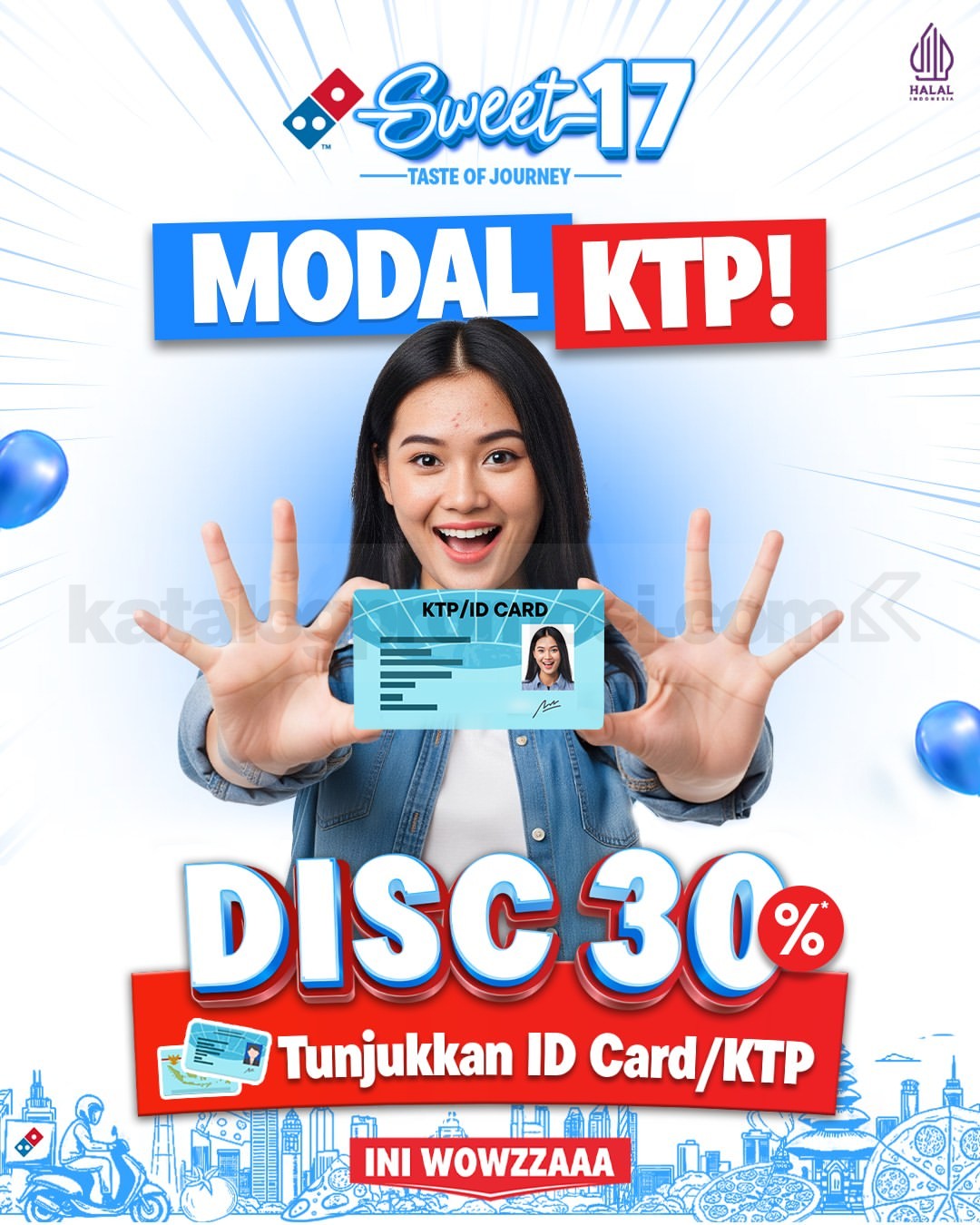 Promo Domino’s Pizza August Birthday Deal memberikan traktiran ultah spesial berupa diskon 30% cukup dengan menunjukkan KTP atau kartu identitas lain yang mencantumkan bulan lahir Agustus.