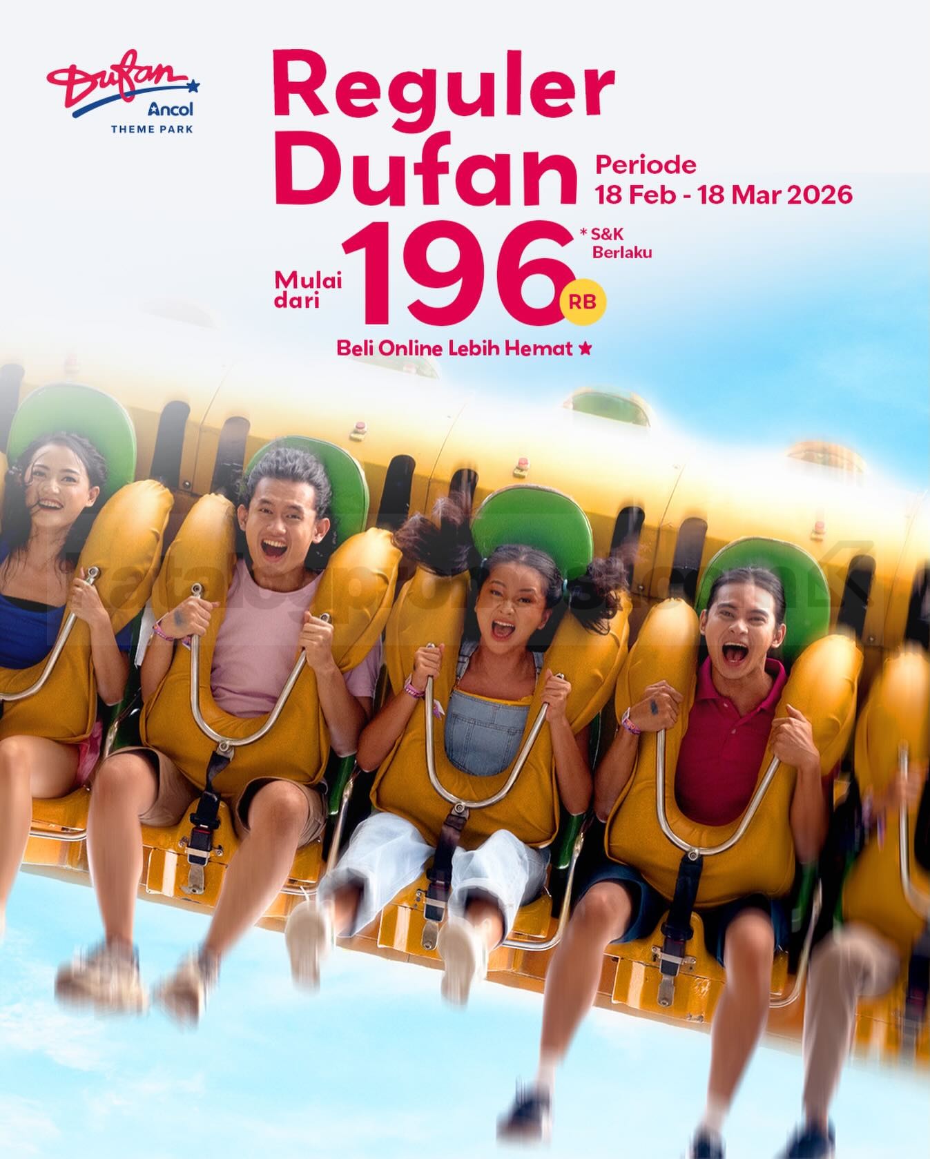 Promo Dufan Tiket Regular mulai Rp. 196.000 khusus Online periode 18 Februari – 18 Maret 2026 untuk main seharian di Dufan.