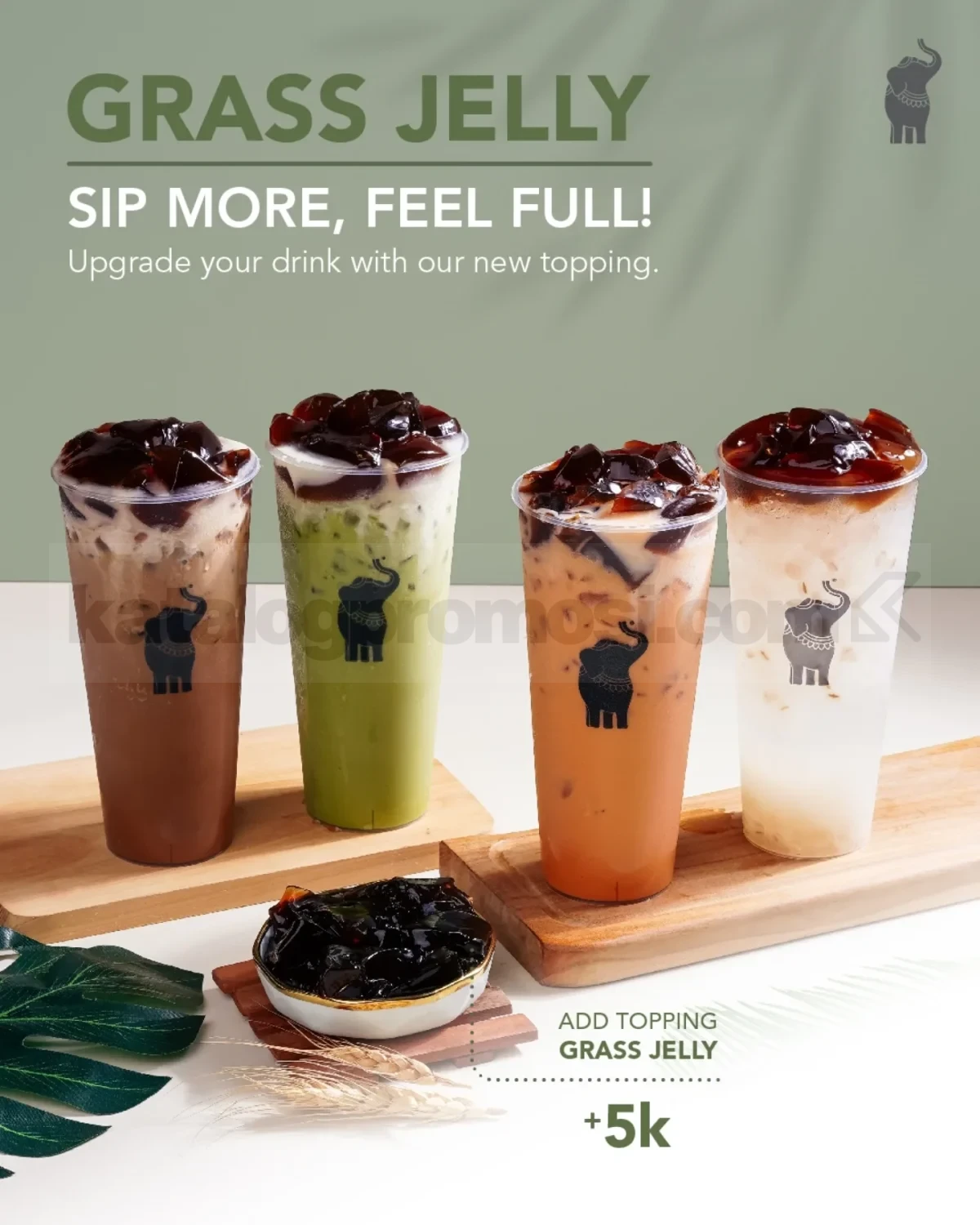 - Upgrade topping Grass Jelly ke minuman reguler tambah Rp. 5.000