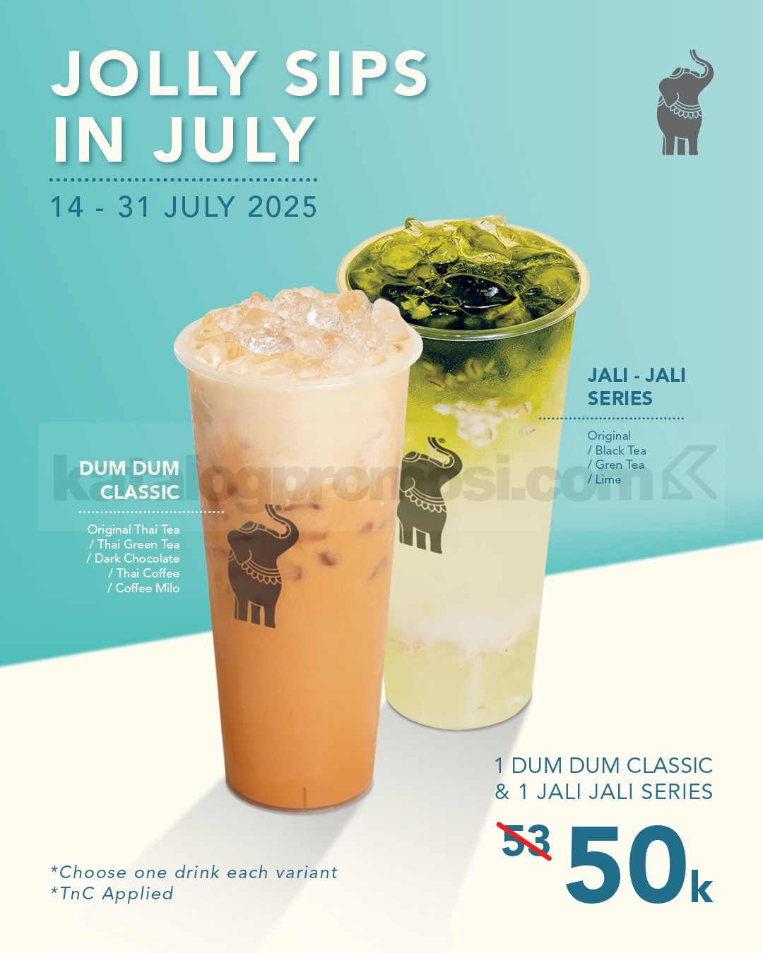 Promo Dum Dum Thai Drinks ITC Cempaka Mas diskon 50% pembelian kedua, berlaku 1 – 7 November 2025. Double the freshness, half the price!